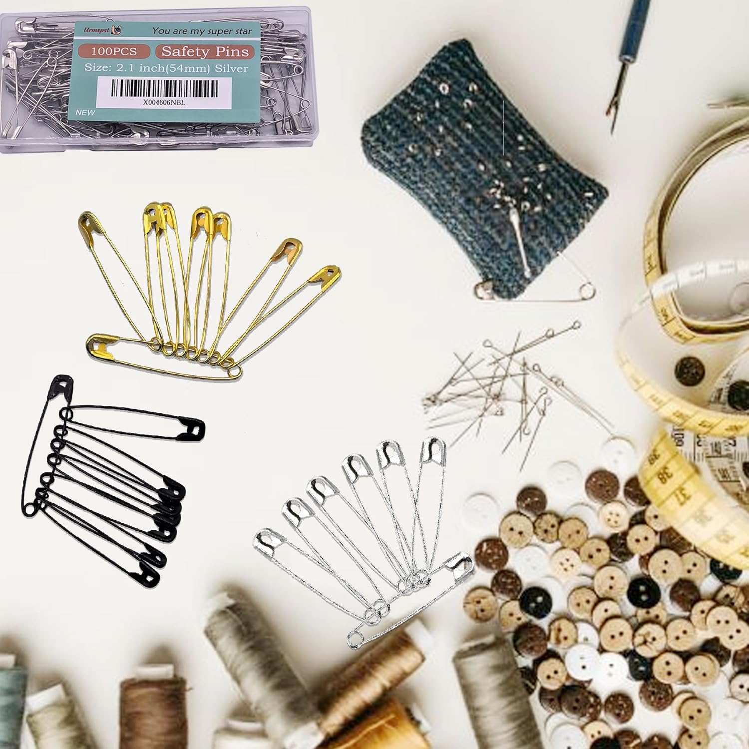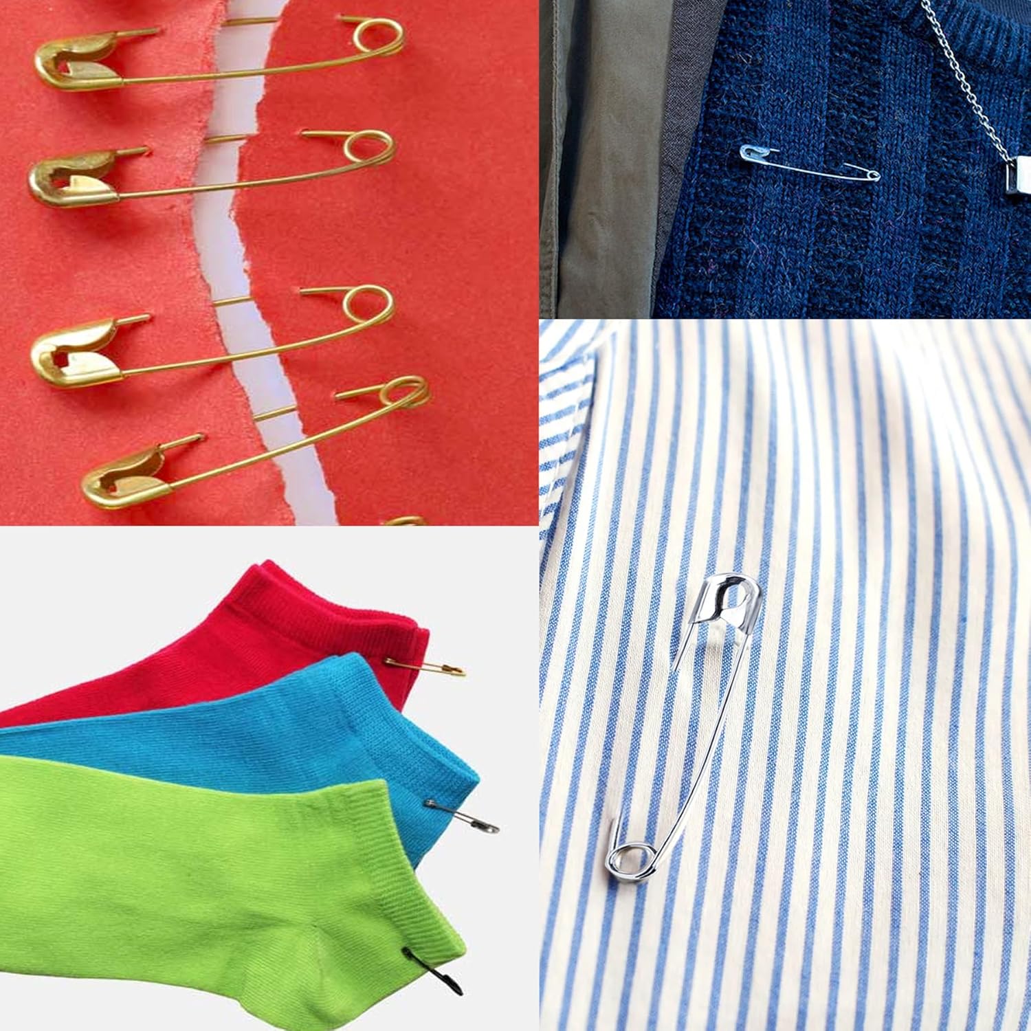 - š [Multi-Use] These safety pins are perfect for Everyday Use, universally and commonly used to fasten pieces of paper, fabric or clothing together and do not cause damage or large hole.