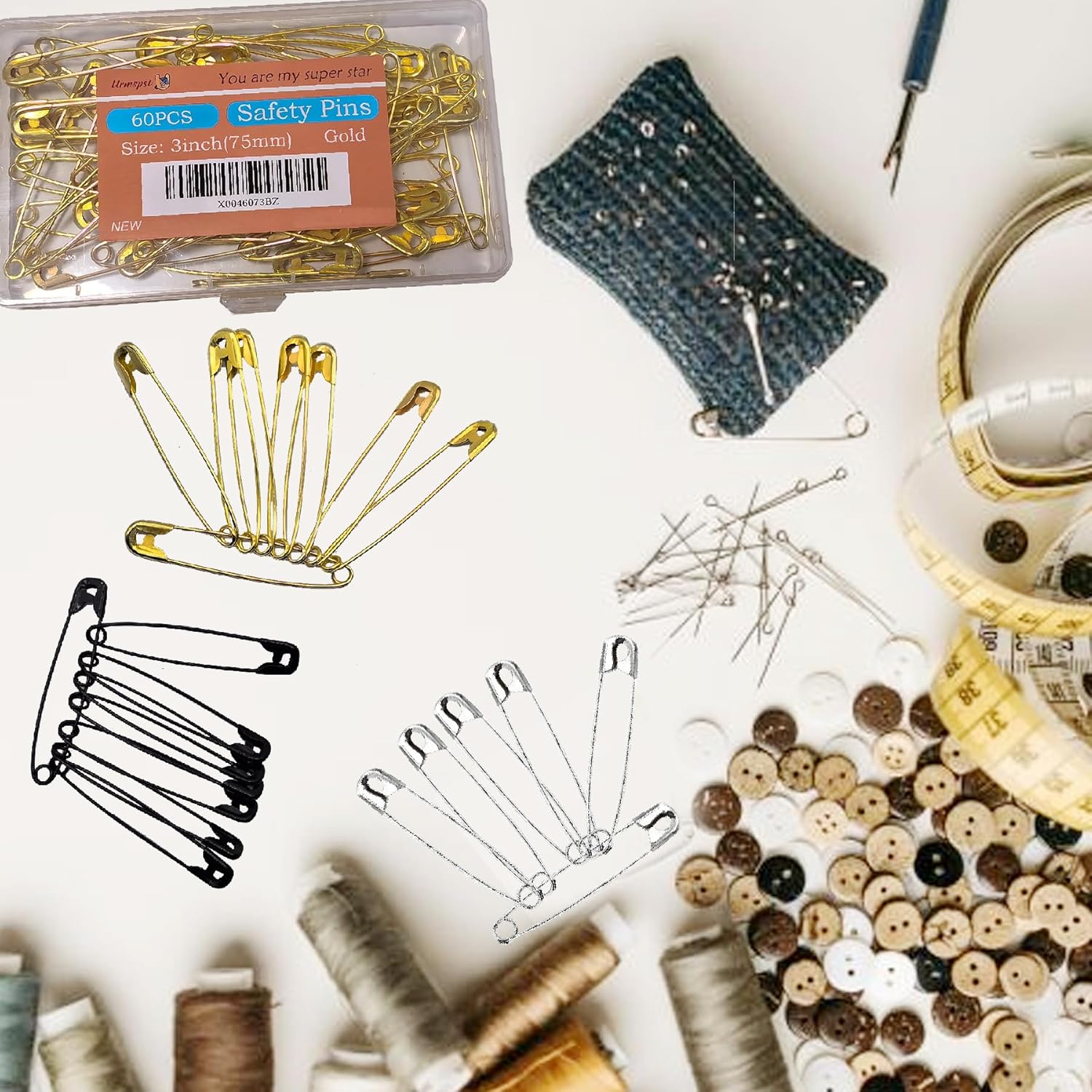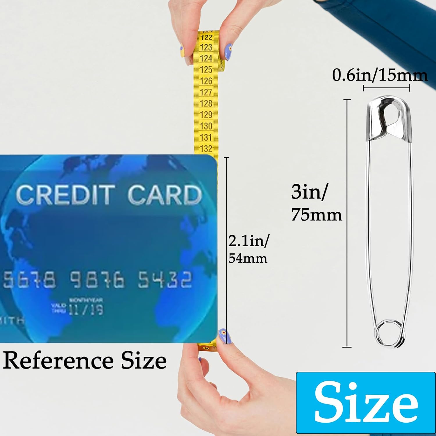 - š [Great Value Pack] Set of 60pcs, 3.0in(75mm) large safety pins with a convenient storage box, Silver color safety pins to make your daily life more convenient.