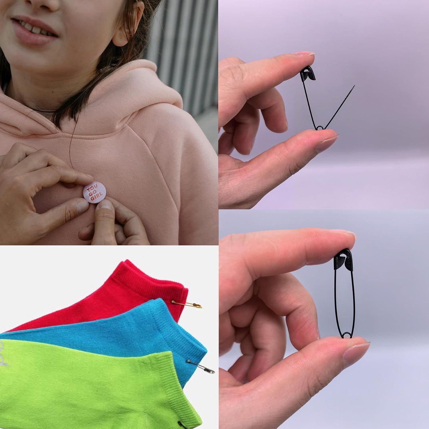 - š [Great Value Pack] Set of 600pcs, 1.5in(38mm) small safety pins with a convenient storage box, Black color safety pins to make your daily life more convenient.