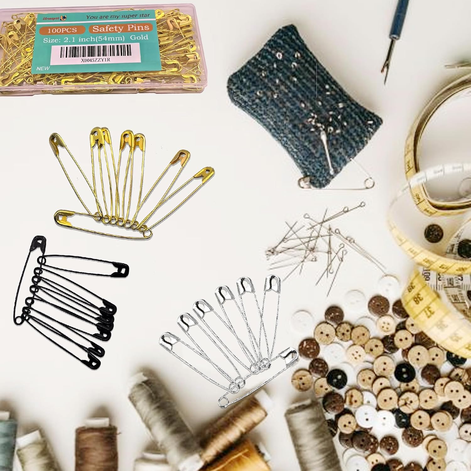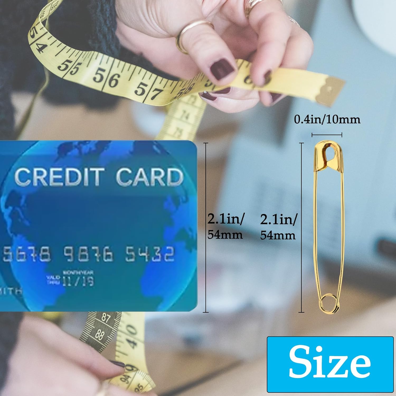 100PCS Safety Pins, 2.1 inch Small Safety Pins, Rust-Resistant Nickel Plated Steel, Sharp Edge Safety Pin for Clothes, Sewing, 54mm Decorative Safety Pins Assorted (Gold)