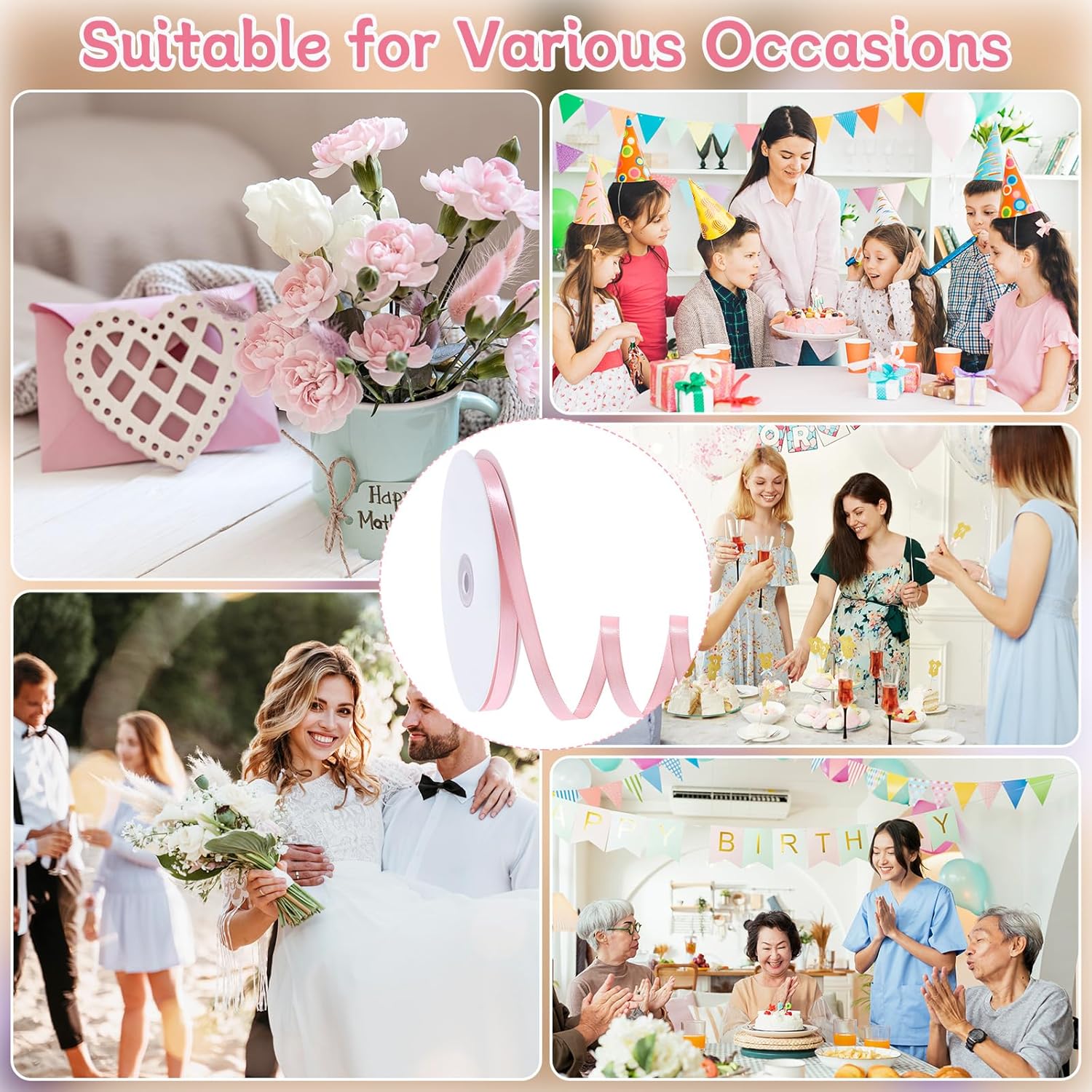 - 【Use Occasions】Pink craft ribbon is often used for weddings, brings a kind of romance atmosphere, and it also suitable for Valentine's Day, Mother's Day, Easter, Graduation season, Halloween, Christmas gift wrapping, ribbon cutting ceremony or party decorations