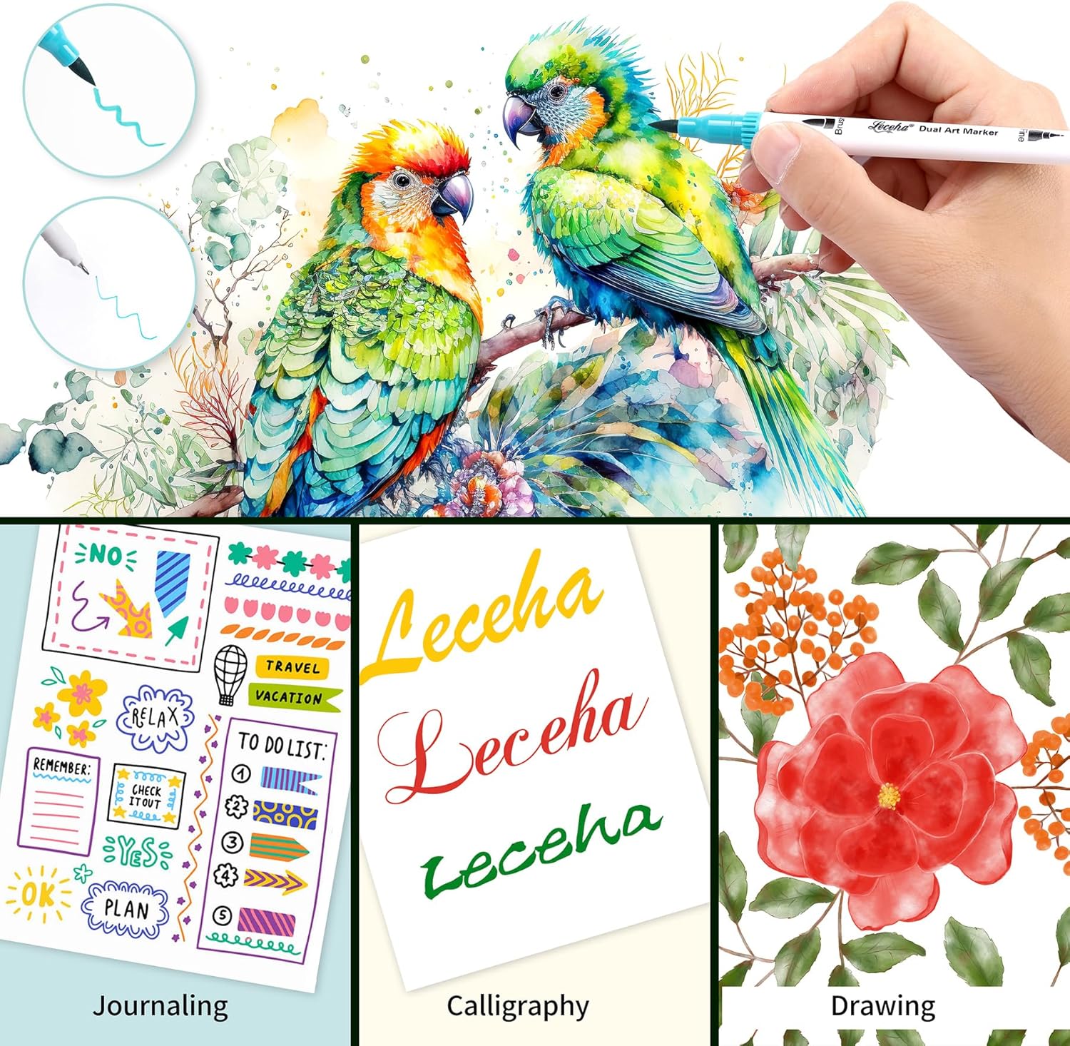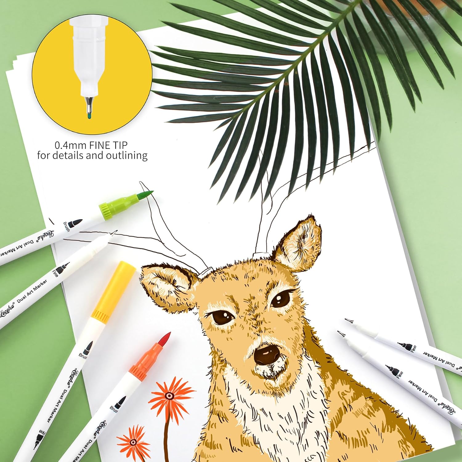 Dual Tip Art Markers Pens for Kids Adult Coloring Books Artist Fine and Brush Tip Colored Pens Water-color Pens for Journaling Note Taking Writing Planning Art Project
