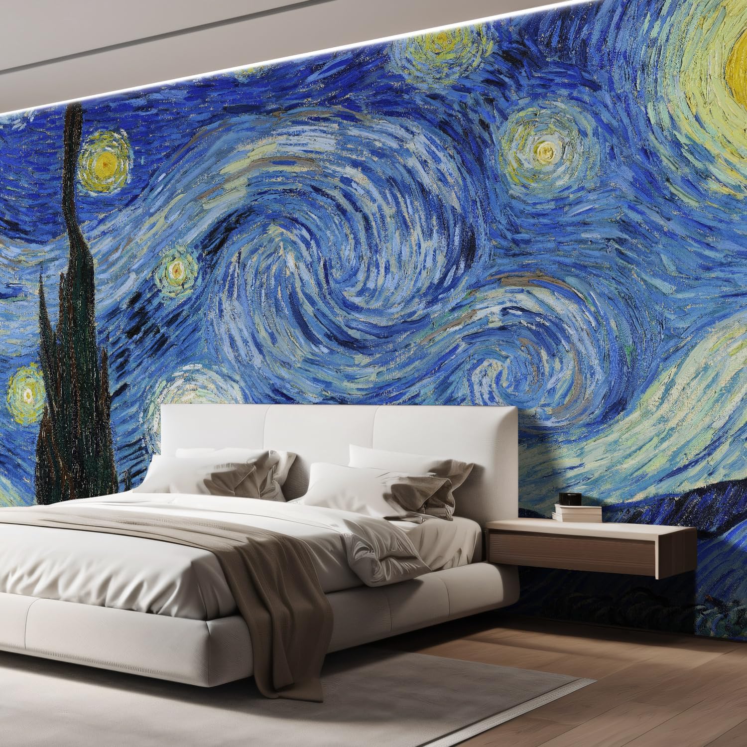 wall26 Starry Night by Vincent Van Gogh Dutch Impressionism 20th Century Artist Peel and Stick Large Wall Mural, Removable Wallpaper, Home Decor - 108x120 inches