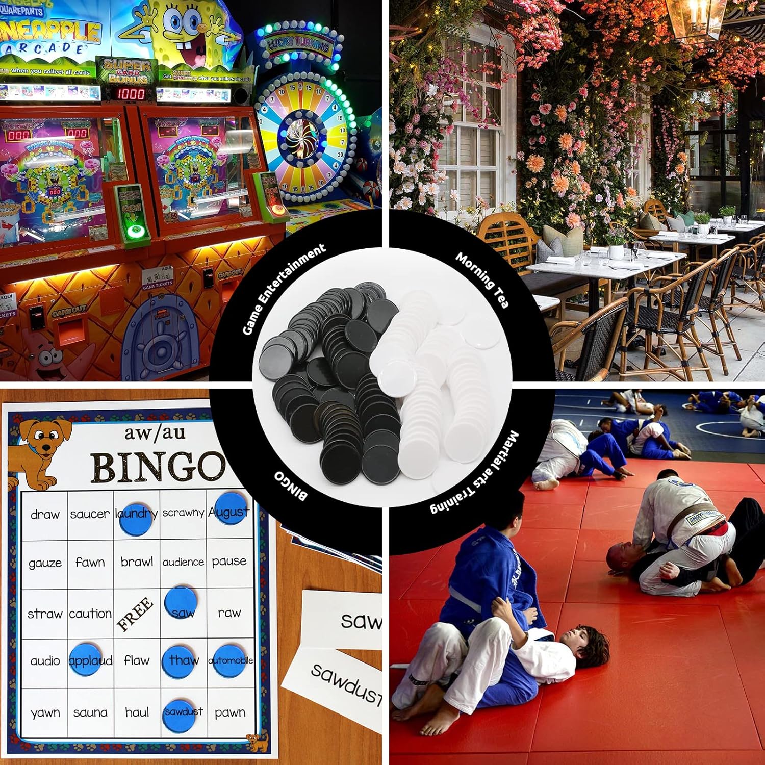 Set of 100 Opaque Plastic Learning Counters Mini Poker Chips Game Tokens with Storage Box (Black+White, 1.26 Inch)