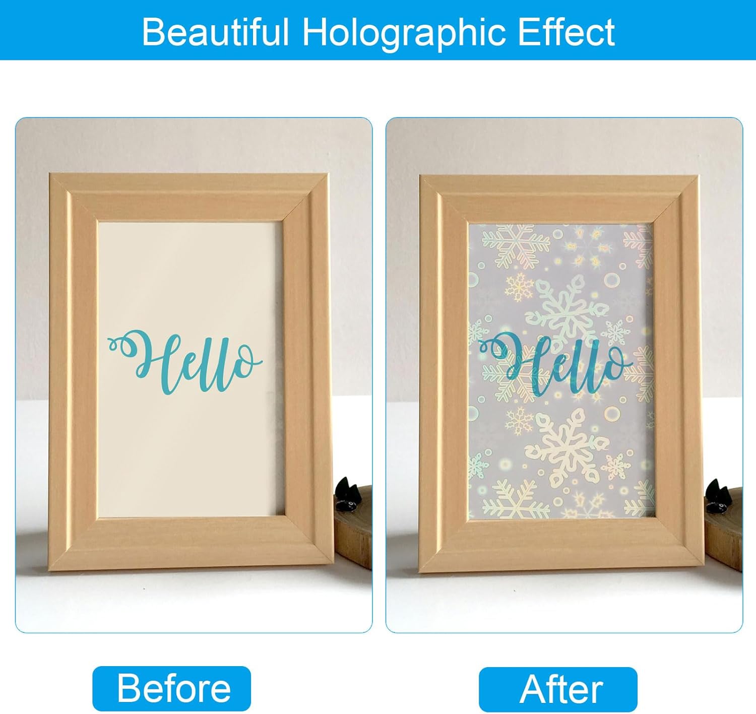 - Specification: Material: Polypropylene (Laser Film), Paper (Backing); Color: Transparent; Pattern: Snowflake; Size: A4 Size (LxW: 297x210mm/11.7x8.3inch); Package List: 10Sheets x Holographic Sticker Paper