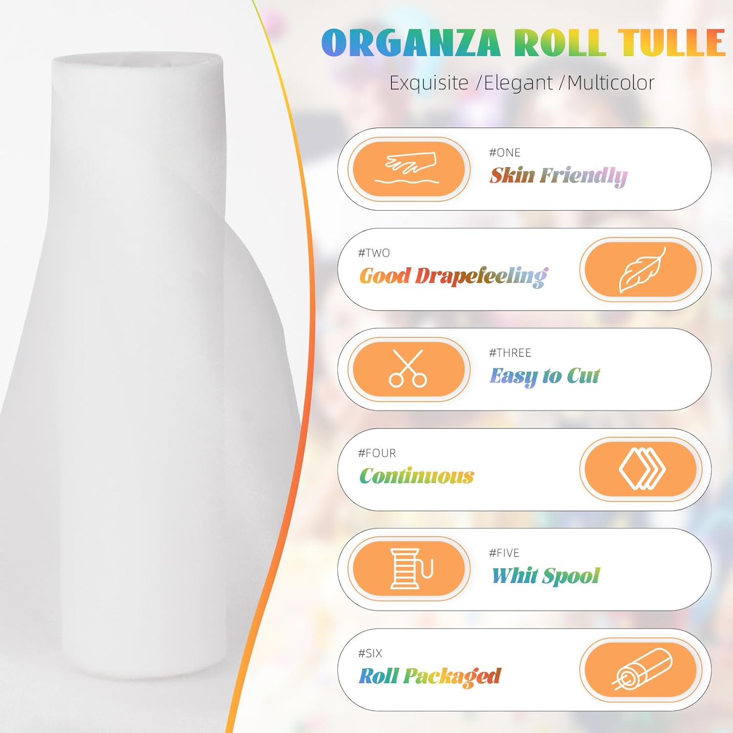 - 【Widely Used Scenarios】Organza tulle is suitable for making party backdrops, chair sashes, gift wrapping, bouquet packaging, christmas tree decor, dresses, sheer curtains, capes, sashes and more. Great for birthday party, bridal shower, baby shower, prom, and other occasions.