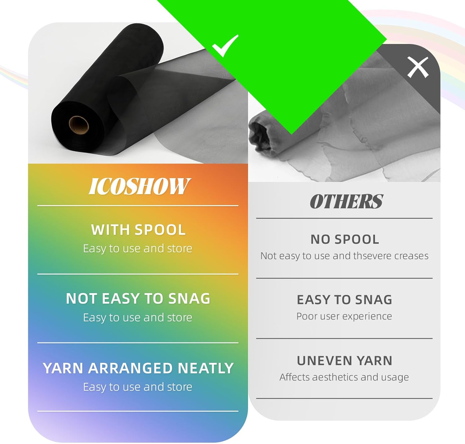 - 【Convenient to Store & Use】Cut it freely according to the length you want, and the edges will not unravel. The organza fabric wraps neatly around a paper core for easy folding and storage. It can maintain its vivid original color after repeated use, and it is not easy to fade.
