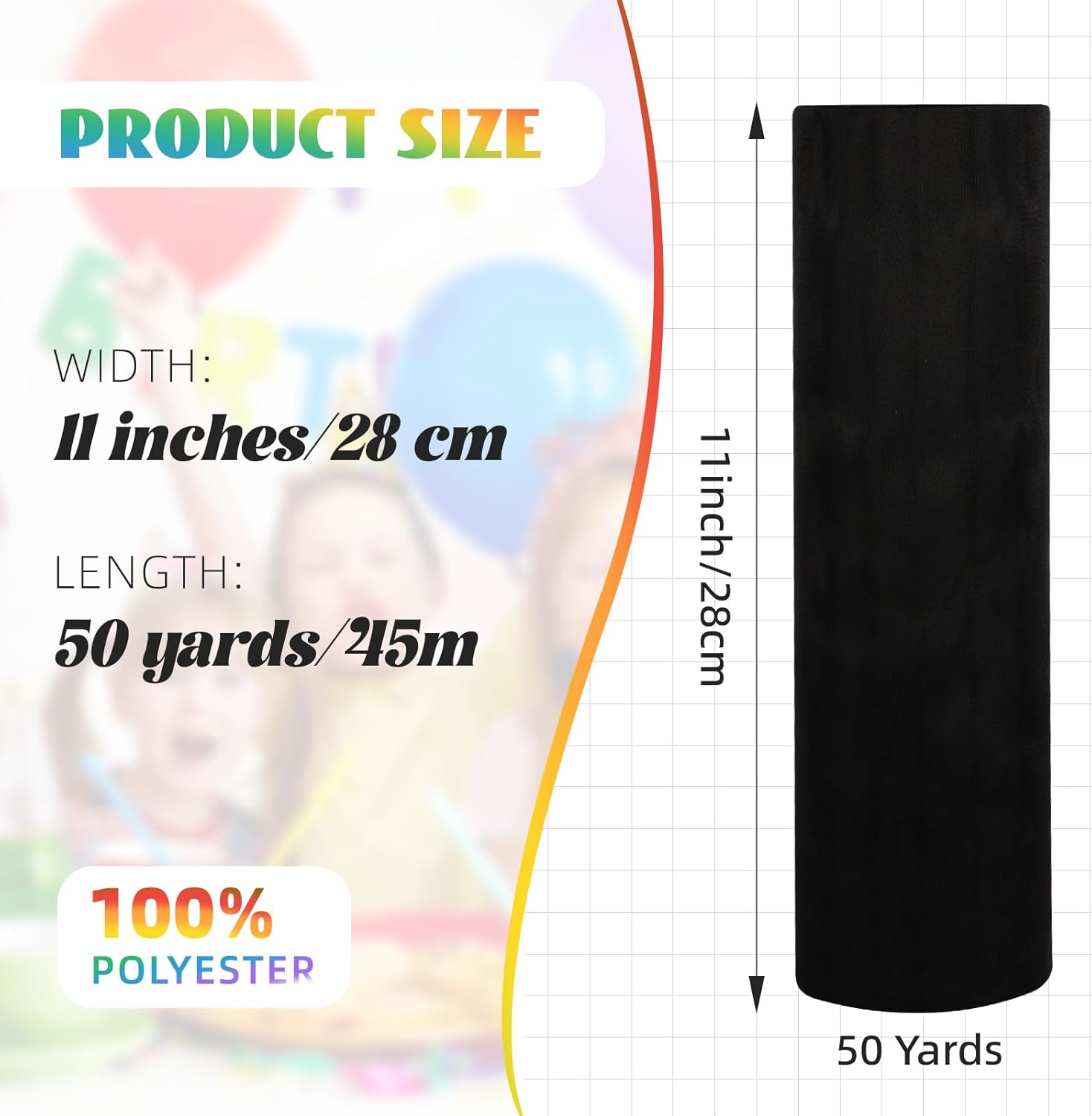 Crystal Organza Fabric Tulle 11 Inch by 50 Yards Sheer Tulle Rolls for DIY Craft Wedding Party Baby Shower Decor Gift Wrapping Party Supplies (Black)