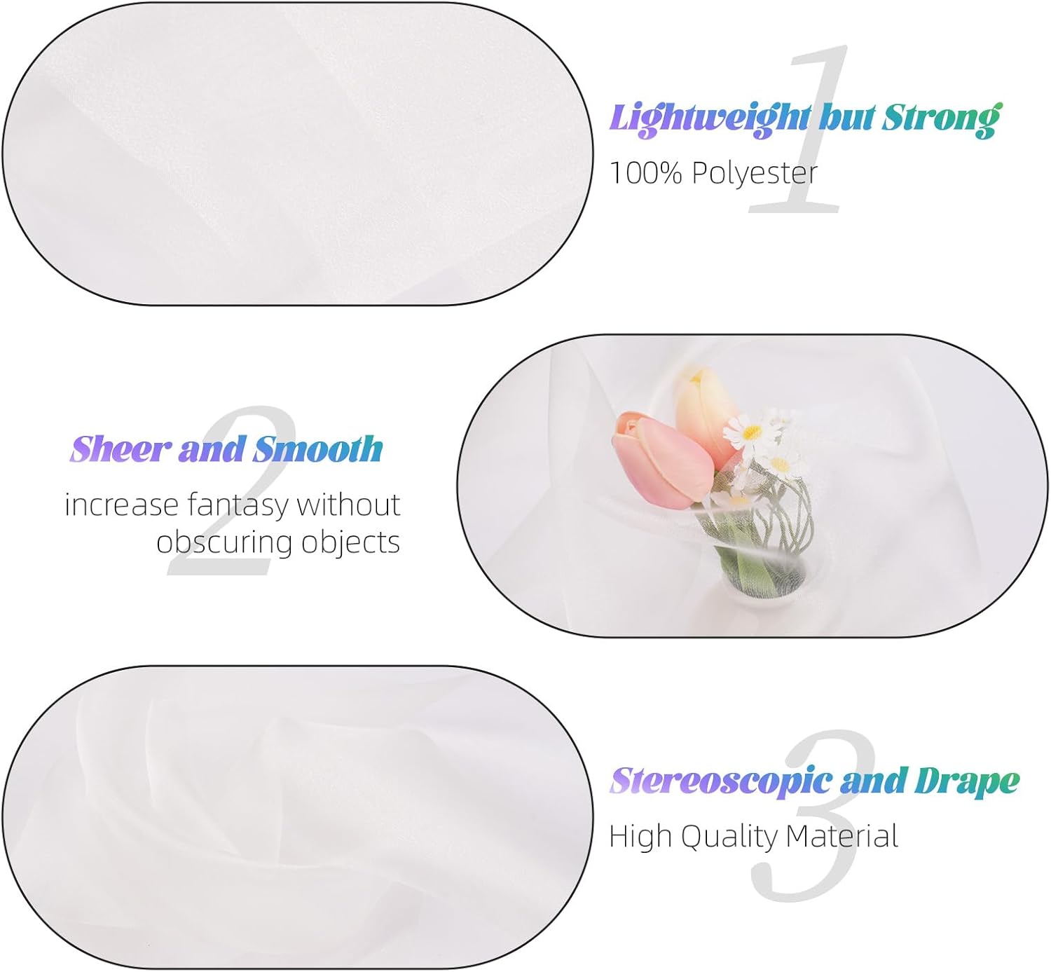 - 【Widely Used Scenarios】Organza tulle is suitable for making party backdrops, chair sashes, gift wrapping, bouquet packaging, christmas tree decor, dresses, sheer curtains, capes, sashes and more. Great for birthday party, bridal shower, baby shower, prom, and other occasions.