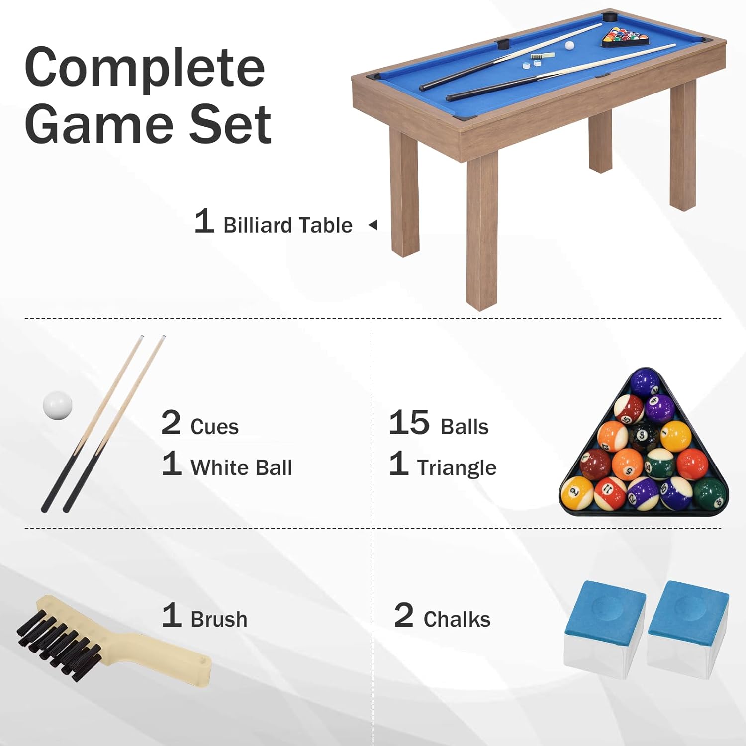 54" Portable Pool Table - Billiard Table for Kids & Adults with 2 Cues, Triangle Rack, Chalk & Brush - Compact Wooden Game Table for Home, Game Room, Indoor & Outdoor