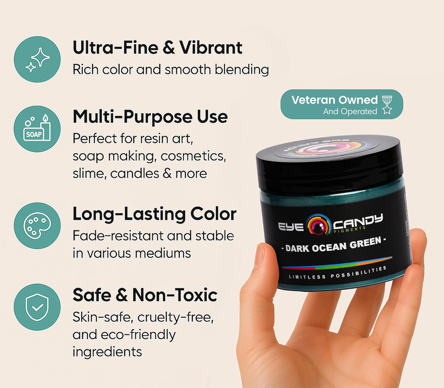 Eye Candy Pigments Premium Green Mica Powder - Dark Ocean Green (50gr) - for Epoxy, Resin, Soap, Paint, Woodworking, Acrylic Pouring, Bath Bombs, Fishing Lures - DIY Arts and Crafts Additive