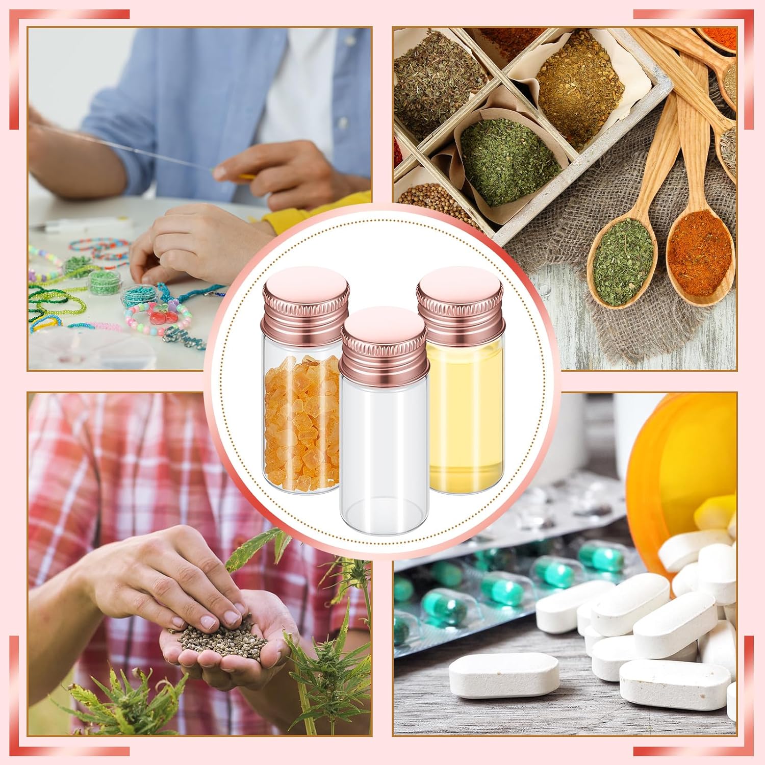100 Pcs Small Clear Vials Spice Mini Jars with Lids Mini Glass Bottles with Screw Aluminum Metal Caps Tiny Jars Sample Containers for Powder Cream Cosmetic Jewelry Wedding (10 ml,Rose Gold)