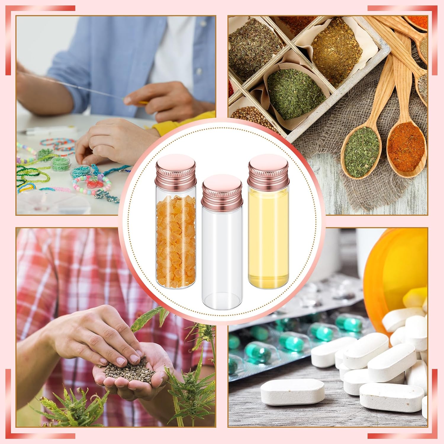 100 Pcs Small Clear Vials Spice Mini Jars with Lids Mini Glass Bottles with Screw Aluminum Metal Caps Tiny Jars Sample Containers for Powder Cream Cosmetic Jewelry Wedding (15 ml,Rose Gold)