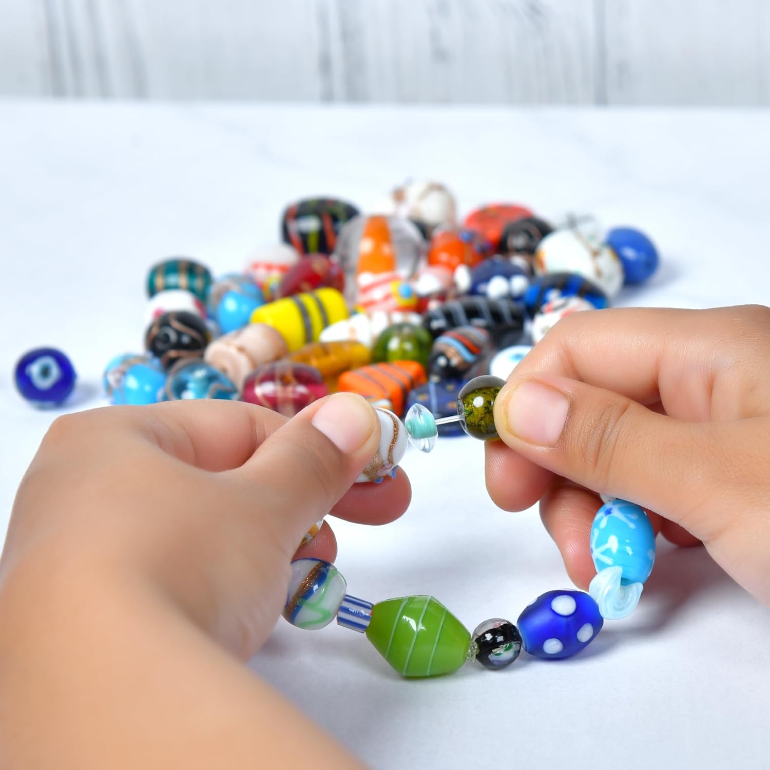 1/2 LB Bag of Assorted Glass Beads for Jewelry Making, Lampwork Murano Bead Mix for Bracelets and Necklaces, Crafting Beads Supplies Kit, Large & Small Beads