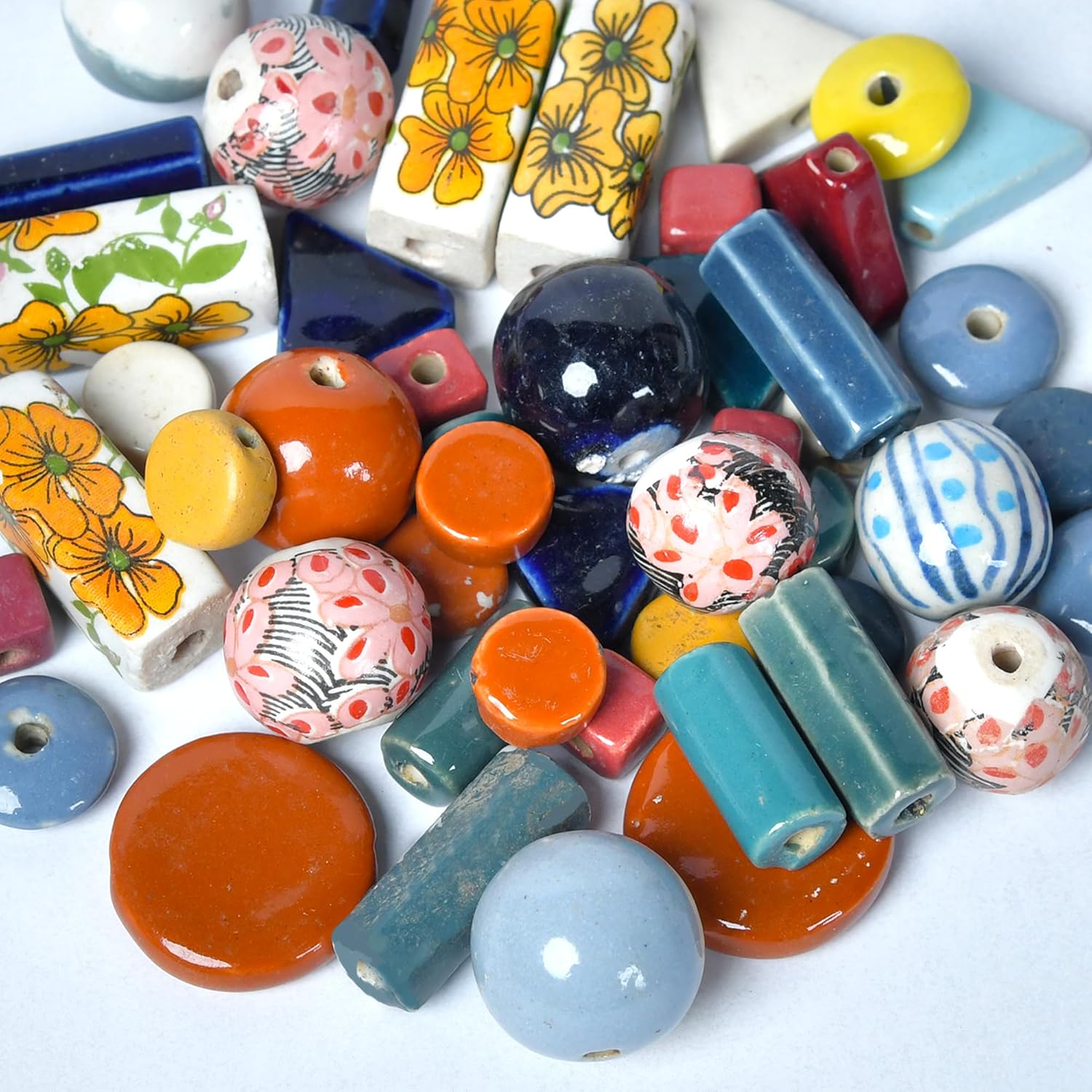 - 50 PCS APPROX bulk ceramic beads mix - various bead and hole sizes for a variety of unique beading projects