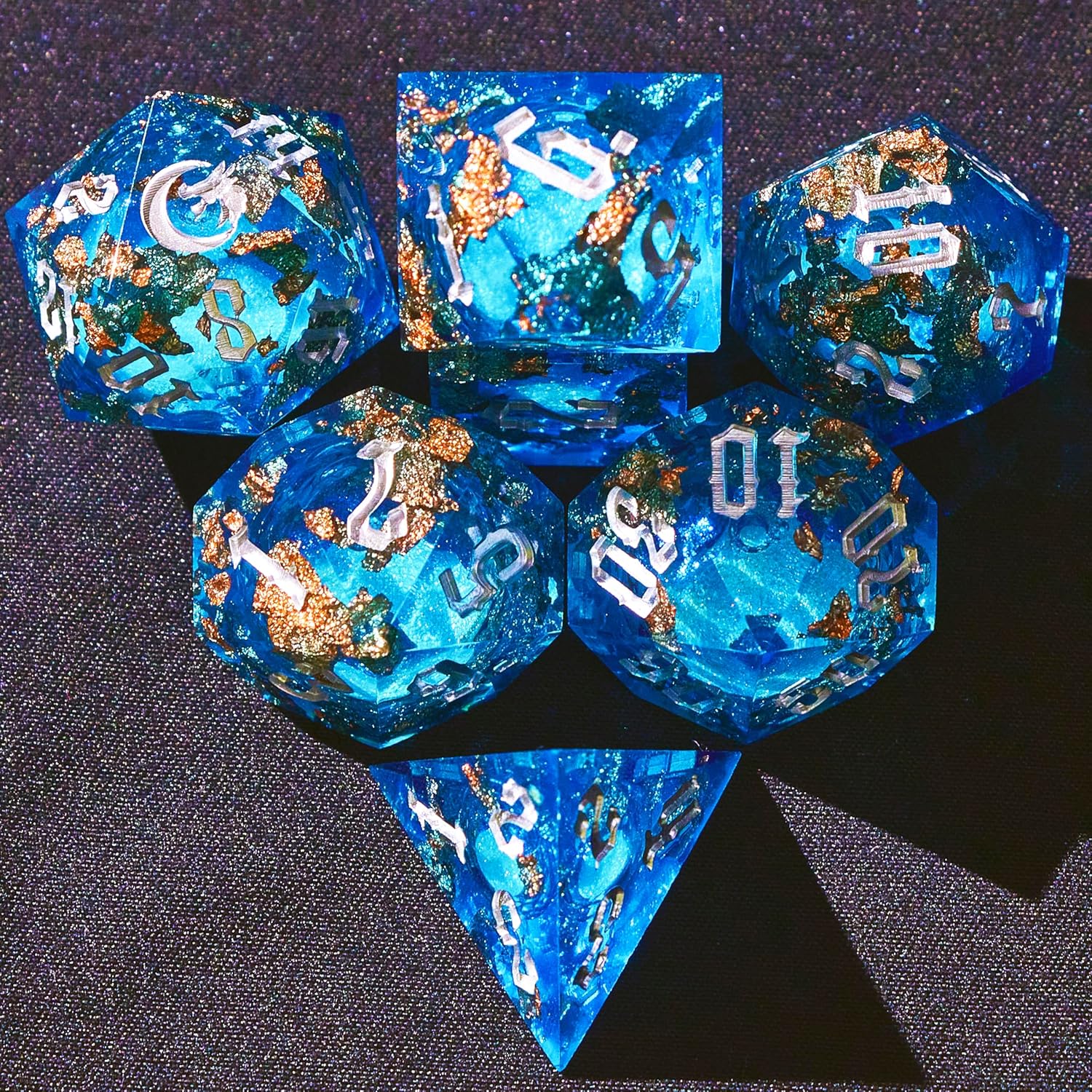 The Moon of Mystery Liquid Core DND Dice Set – Unique Resin Dice for Dungeons & Dragons – Blue Galaxy Moon Dice Set for D&D Gifts
