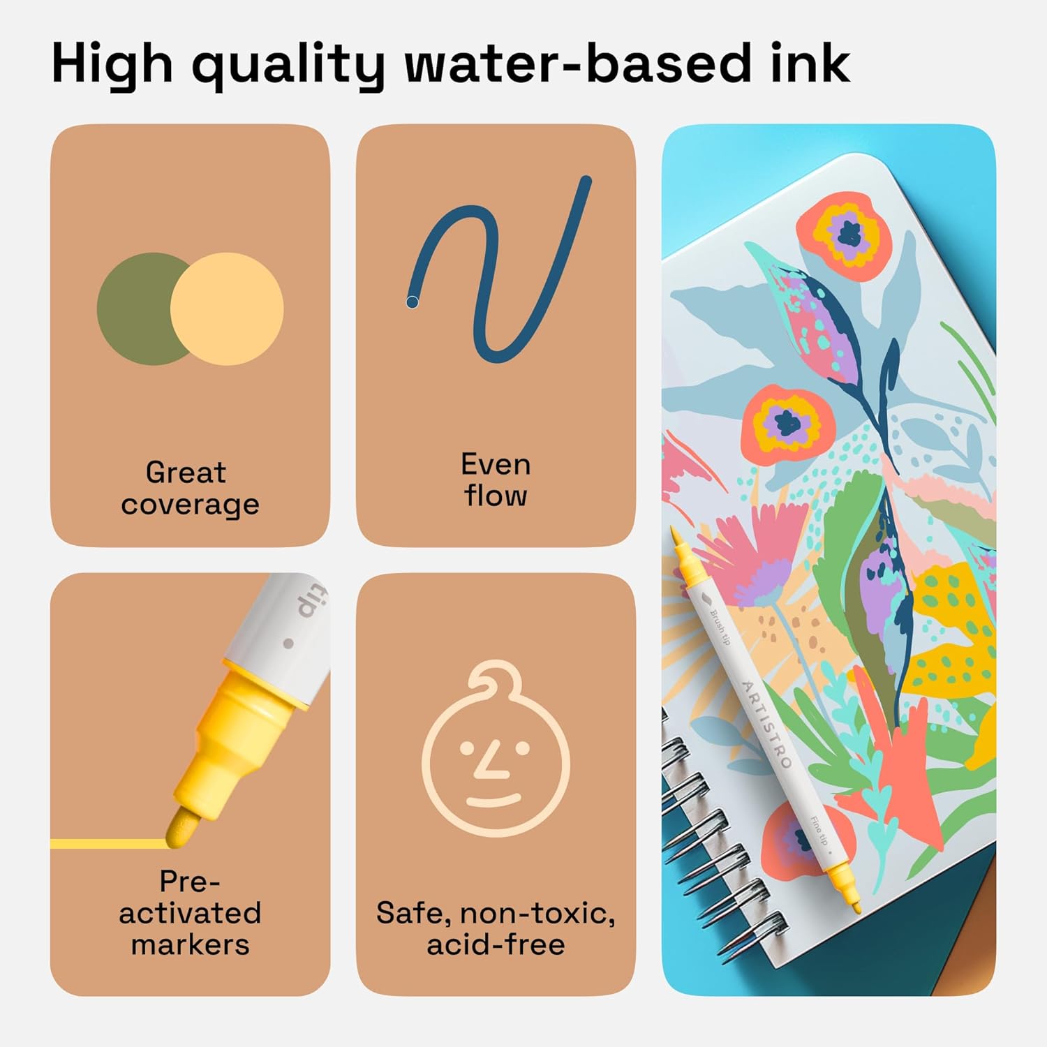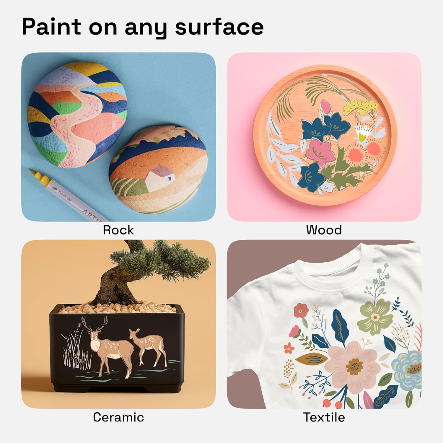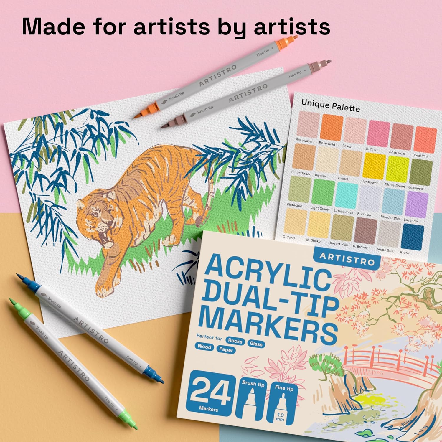 ARTISTRO 24 Pastel Dual Tip Brush + Fine Acrylic Paint Markers - Easy for All Ages & Levels Paint Pens for Fabric, Rock, Glass, DIY - Halloween Pumpkin Painting Kit, Art Supplies, Christmas Gift