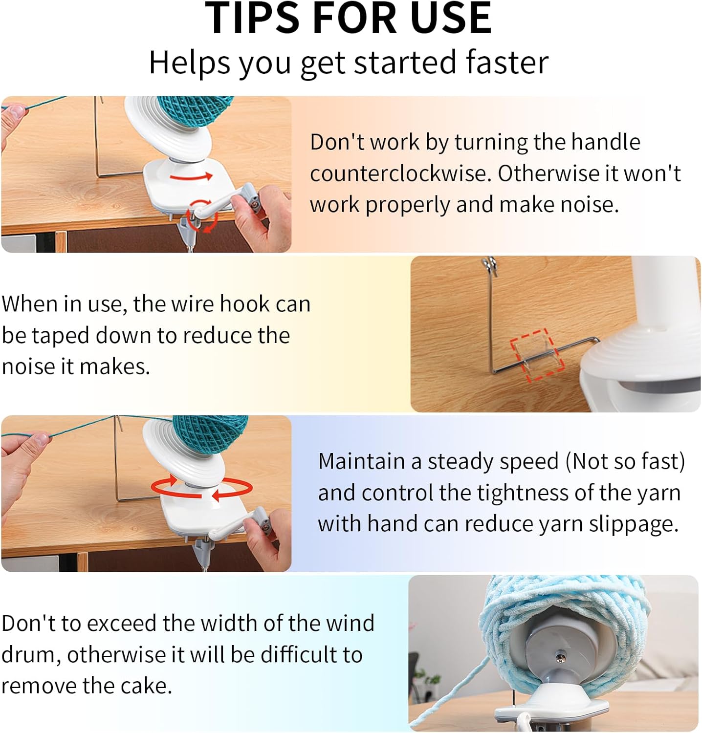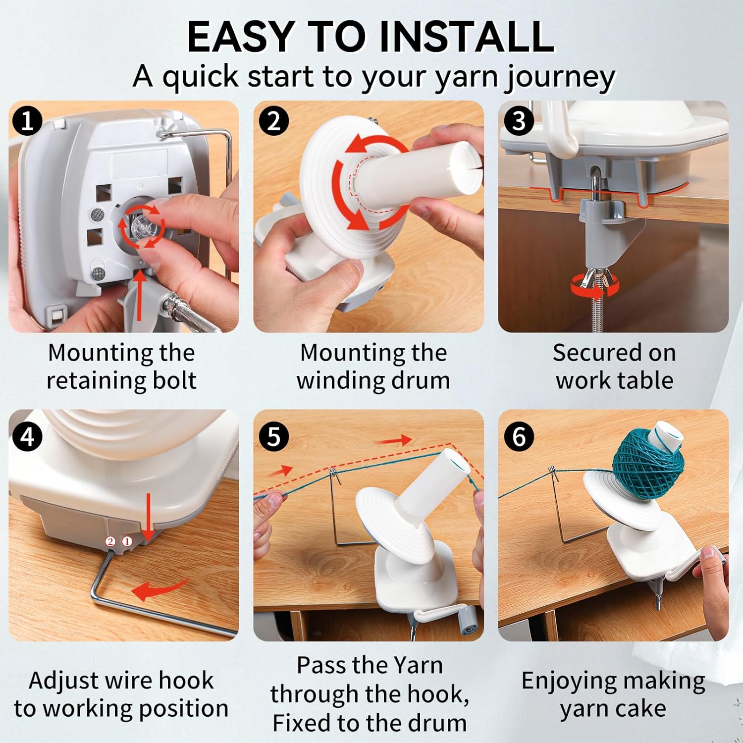 - 【Easy to Install】The yarn ball winder requires only five steps from installation to use, quickly start your knitting journey. Easy to install, reducing your installation woes; Comes with a detailed full-color instruction manual to get you started with the yarn winder faster