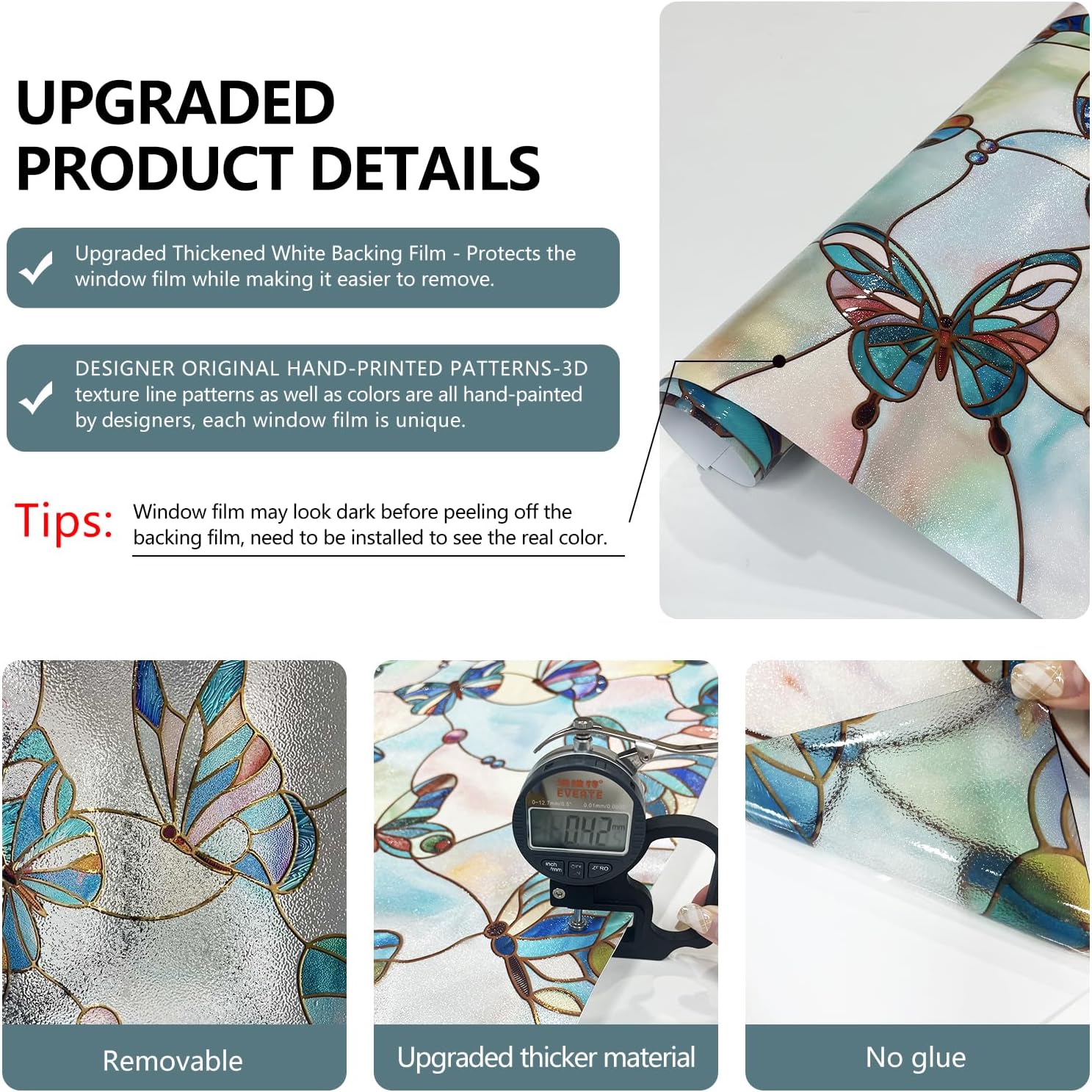 - Removable and Reusable: The film can be removed and reapplied as needed, making it a versatile and cost-effective solution for temporary or seasonal decorations.