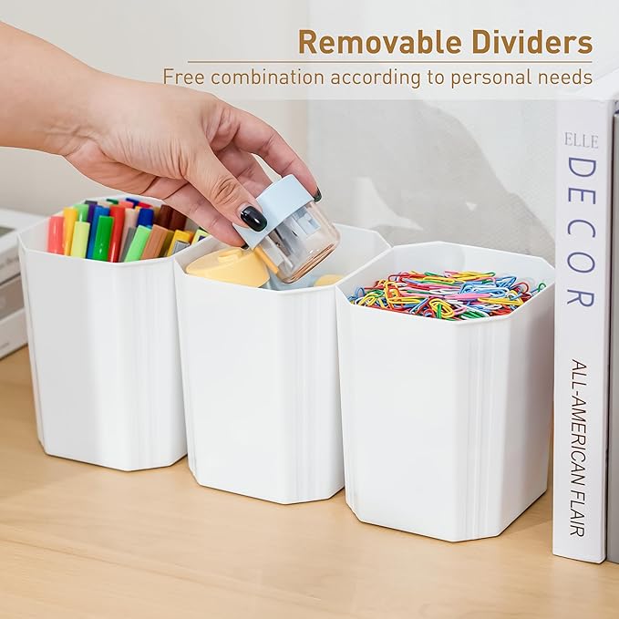 - 【12 Detachable Tall Inserts】These inserts help separate a bin into multiple organized sections. This prevents the items from moving around and getting mixed up in a container. Can also be used in drawers and desktops;