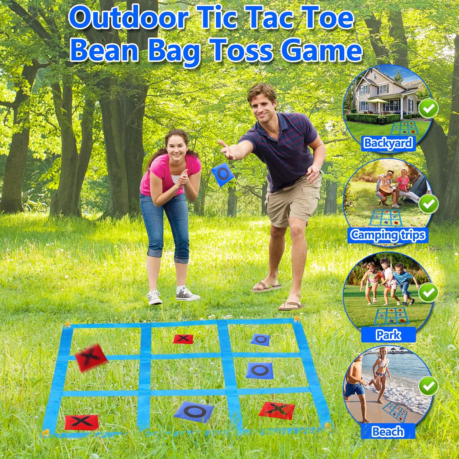 - Fun Yard Game for Kids and Adults - This lawn games combines the outdoor Tic Tac Toe and Bean Bag Toss into a outdoor playset that offers new challanges. This backyard game can be made easier by getting closer, or harder by standing further away which makes it fun for all ages.