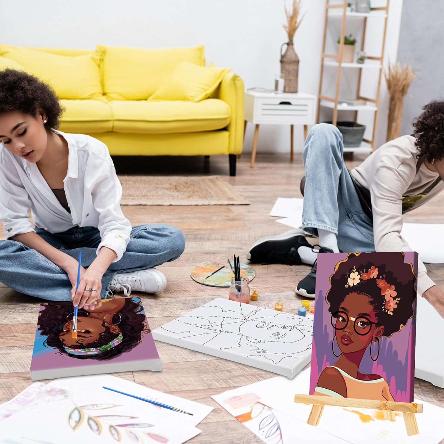 Zhanmai 12 Pack Pre Drawn Canvas for Painting Sip and Paint Kit 8" x 10" Paint Party Set Canvas Painting Pre Printed Canvases for Party Favor DIY Virtual Adult's Date Night(Charming Girl)