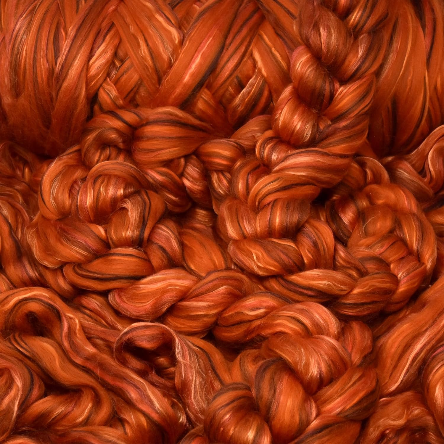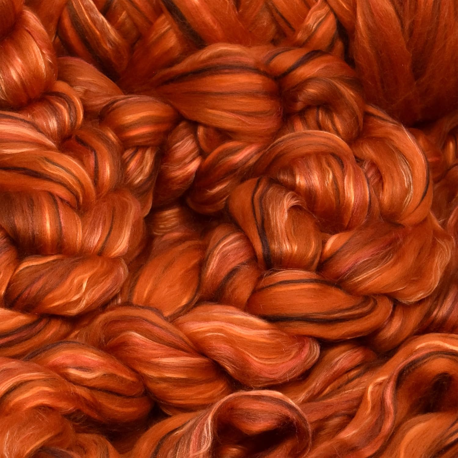Merino Silk Luxe Tonal Designer Blend. Superfine Merino, Mulberry Silk, Tussah Silk. Top Roving for Spinning or Felting. Amber Glow 1oz