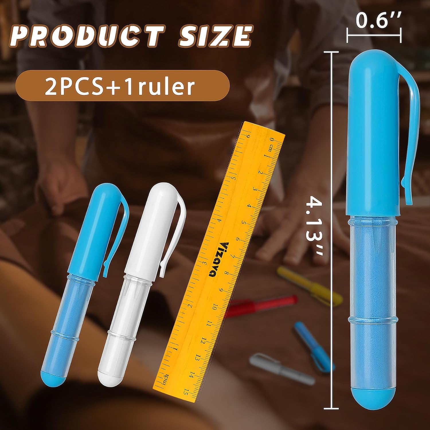 - ✅ Precision Marking: Vizava fabric chalk marker pens set includes 2 Colors fabric markers red blue and white sew chalk and one 15cm ruler .Chalk roller create lines clear visibility on dark or light fabrics and flawless markings on fabrics for sewing, quilting, and crafting.Perfect for drawing intricate patterns and precise lines.