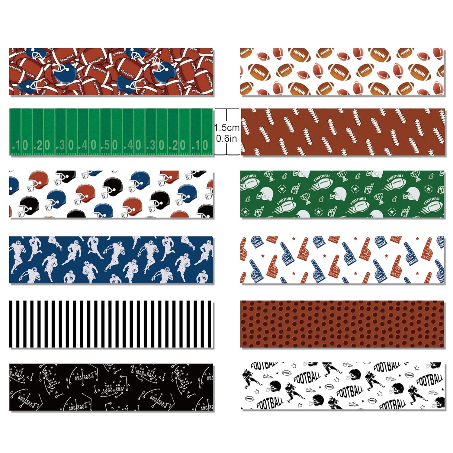 Adirasenotek 12 Rolls Sports Washi Tape,Rugby Football Washi Tape Set Decorative Paper Stickers Decorative Tape, DIY Craft Scrapbook Art Crafts Wrapping Decor for Gifts Wrapping