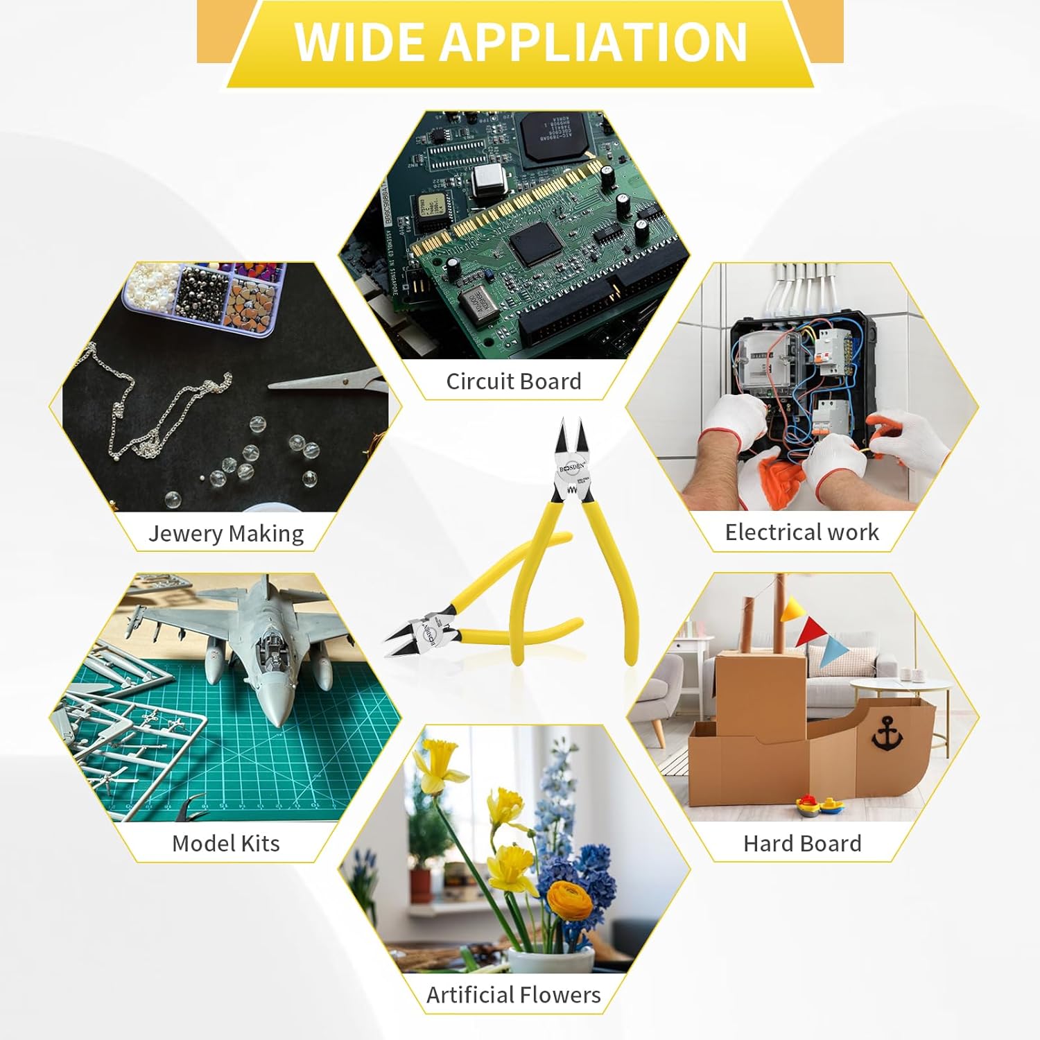 - 【Specialized Flush Cut】Designed with specialized flush cut blades, these flush cut wire cutters ensure a smooth and flat cut every time. Whether you're working on jewelry making, electrical installations, or model building, these side cutters pliers provide professional-grade results.