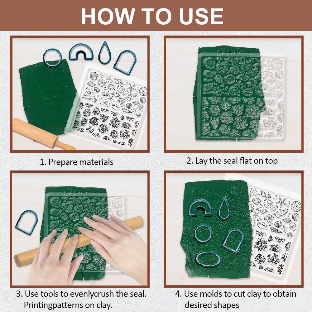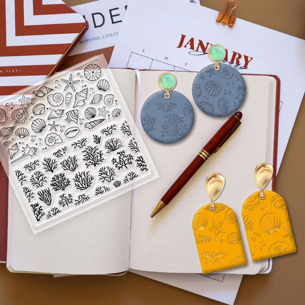 - Ocean Theme: The ocean polymer clay texture sheet for clay jewellery making is very delicate and beautiful. This silicone texture mat includes a variety of sea life patterns including shells, coral, etc. Perfect for jewellery and other small objects, it can meet your various creative needs and add personality and creativity to your work.