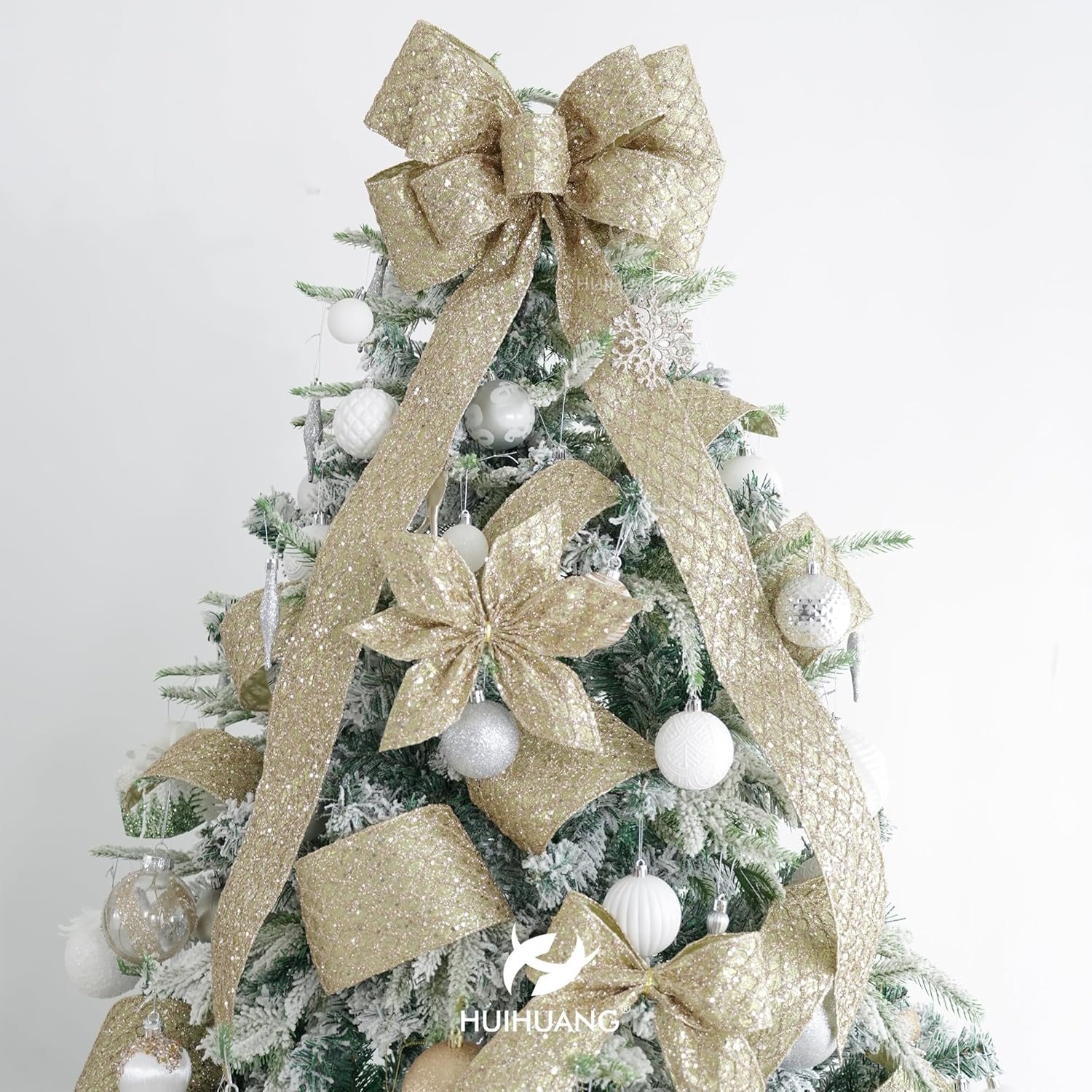 - Application: This ribbon can be used in a variety of Christmas decorations, including tree trimming, wreaths, garlands, gift wrapping, table centerpieces, swags, door hanger, lantern, tree topper bows, champagne color theme Chrisrmas decor etc