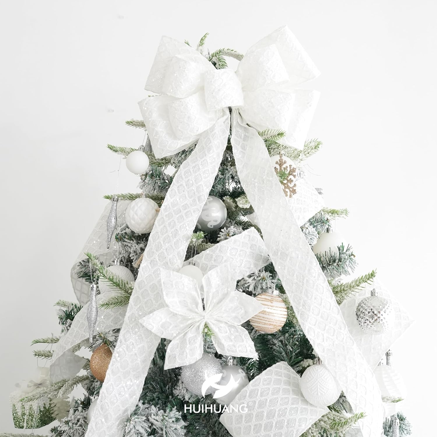 - Application: This ribbon can be used in a variety of Christmas decorations, including tree trimming, wreaths, garlands, gift wrapping, table centerpieces, swags, door hanger, lantern, tree topper bows, white color theme Chrisrmas decor etc