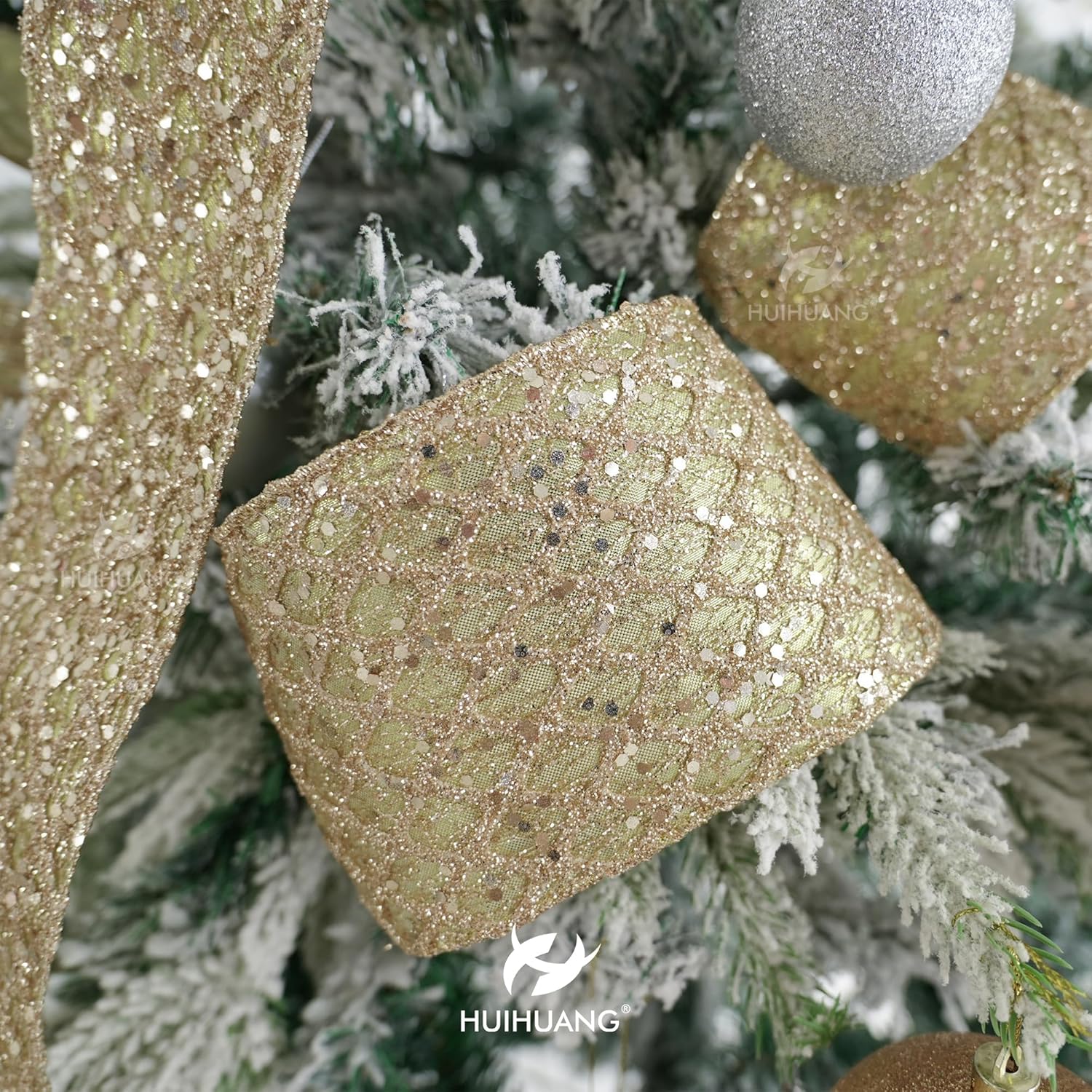- Color: Champagne and gold glitter wired ribbon brings a bright and beautiful sparkly touchness to your decoration craft ideas and holiday gift wrapping, especially for Christmas tree decorations and more