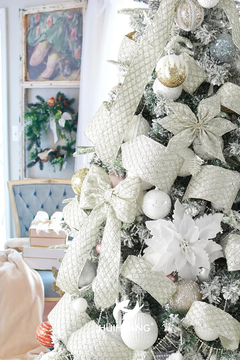 - Application: This ribbon can be used in a variety of Christmas decorations, including tree trimming, wreaths, garlands, gift wrapping, table centerpieces, swags, door hanger, lantern, tree topper bows, champagne color theme Chrisrmas decor etc