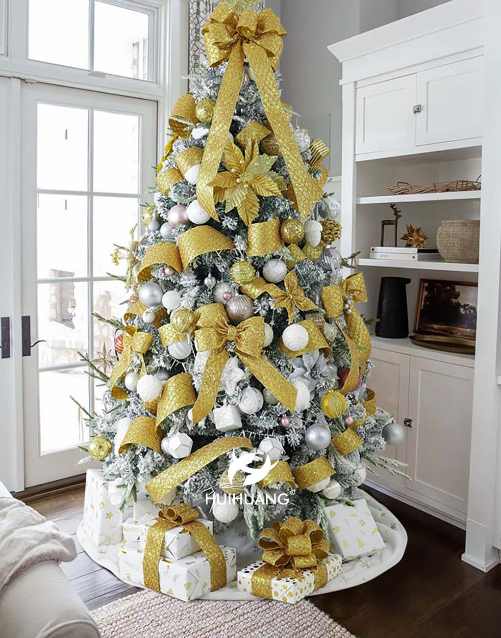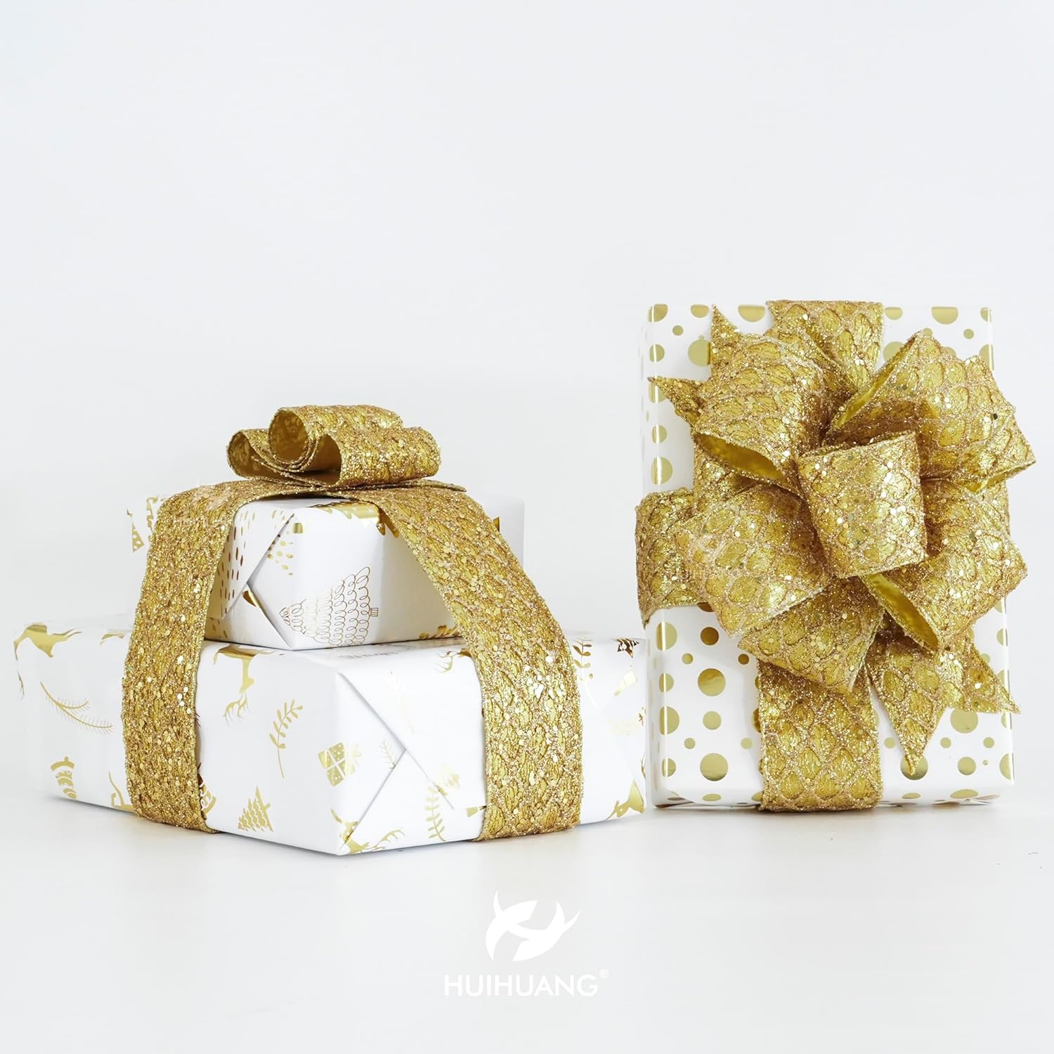 - Application: This ribbon can be used in a variety of Christmas decorations, including tree trimming, wreaths, garlands, gift wrapping, table centerpieces, swags, door hanger, lantern, tree topper bows, gold color theme Chrisrmas decor etc