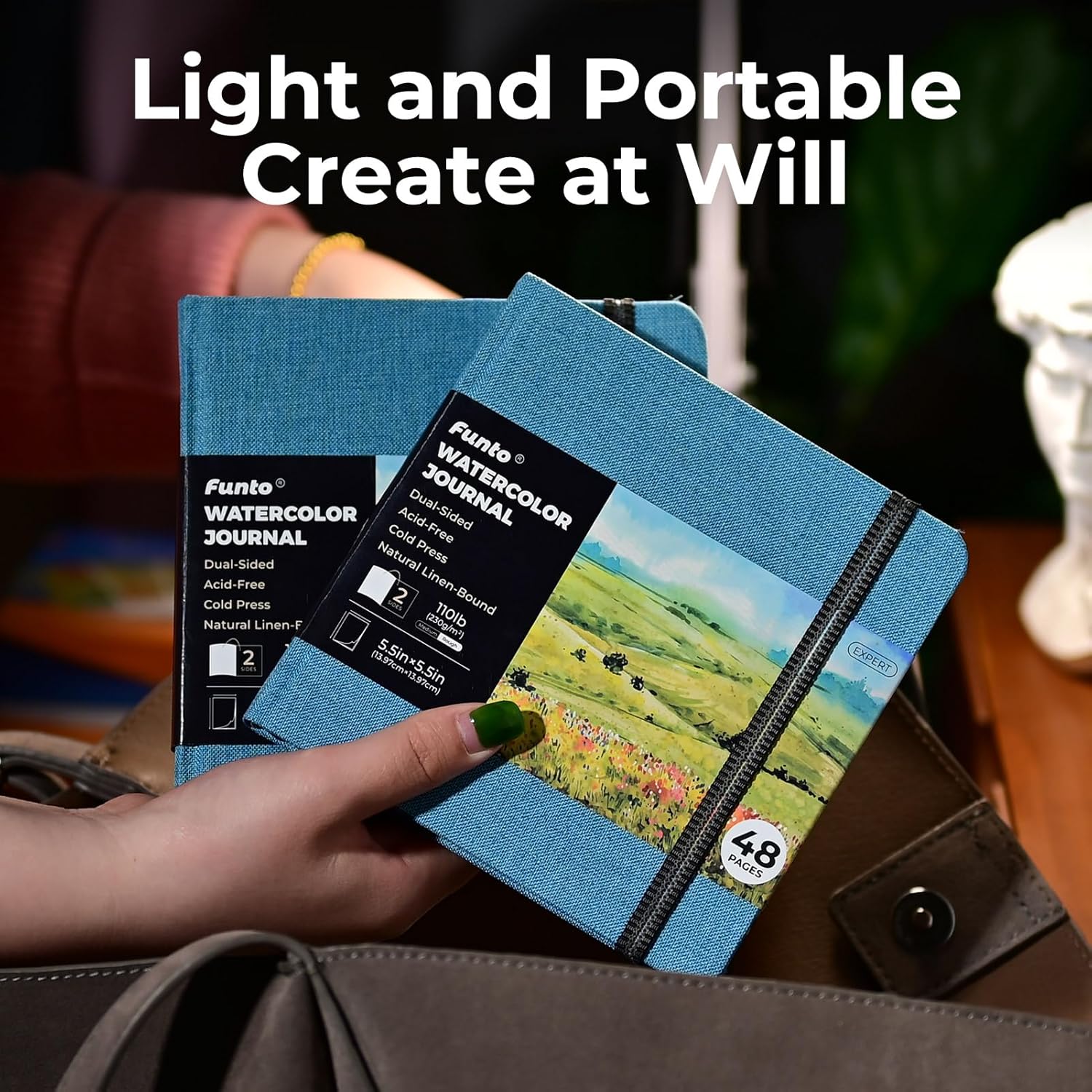 - DURABLE HARDCOVER - The natural-linen hardback cover and elastic band closure protect your pages, and the inner pocket stores some small painting tools, ensuring your artistic creations are safe from wear and tear.