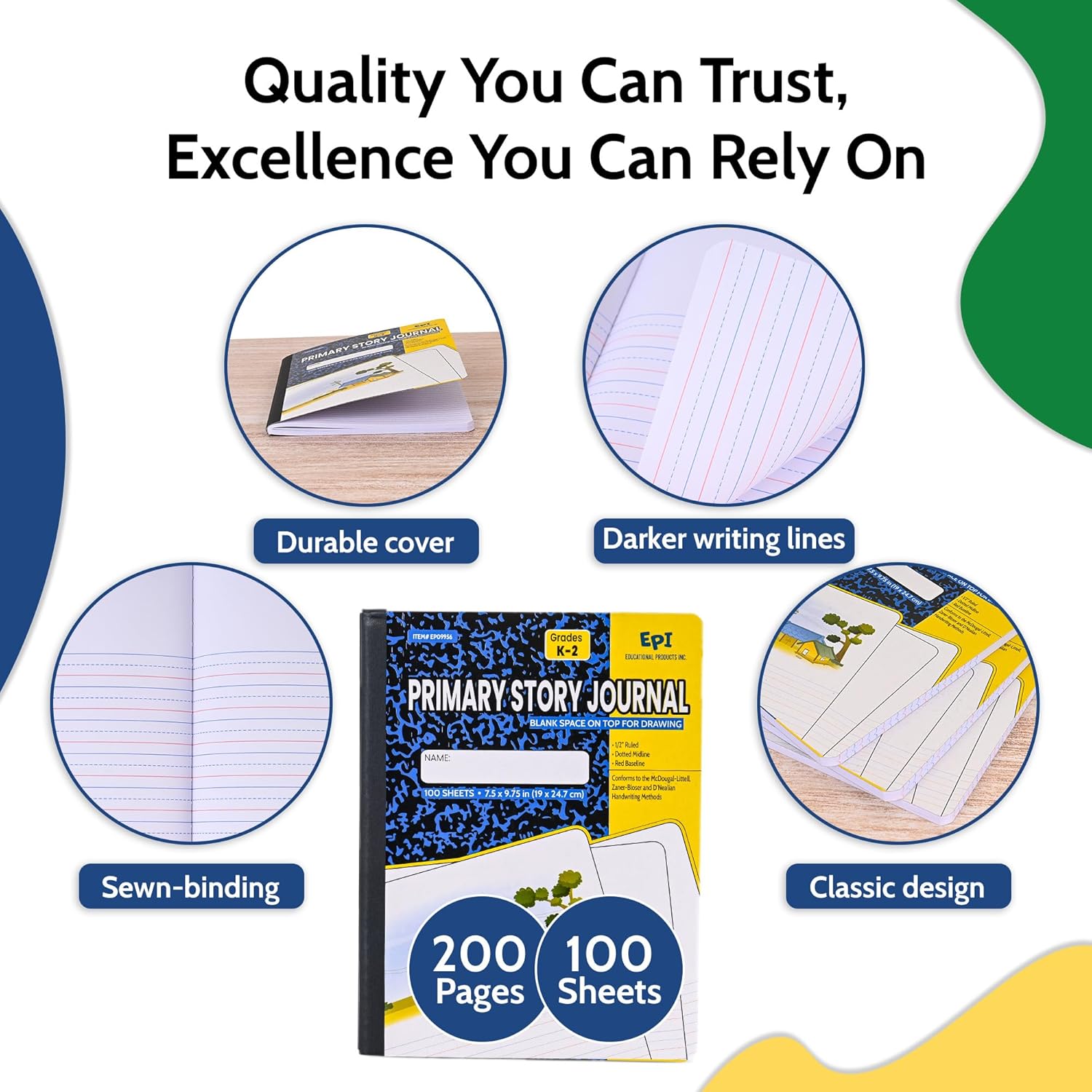 EPI Marble Hardcover Primary Ruled Composition Notebook | 200 Pages (100 Sheets), 9.75 x 7.5 in, Sturdy Sewn Binding | School, Office, Journaling, Notes - 48 Pack