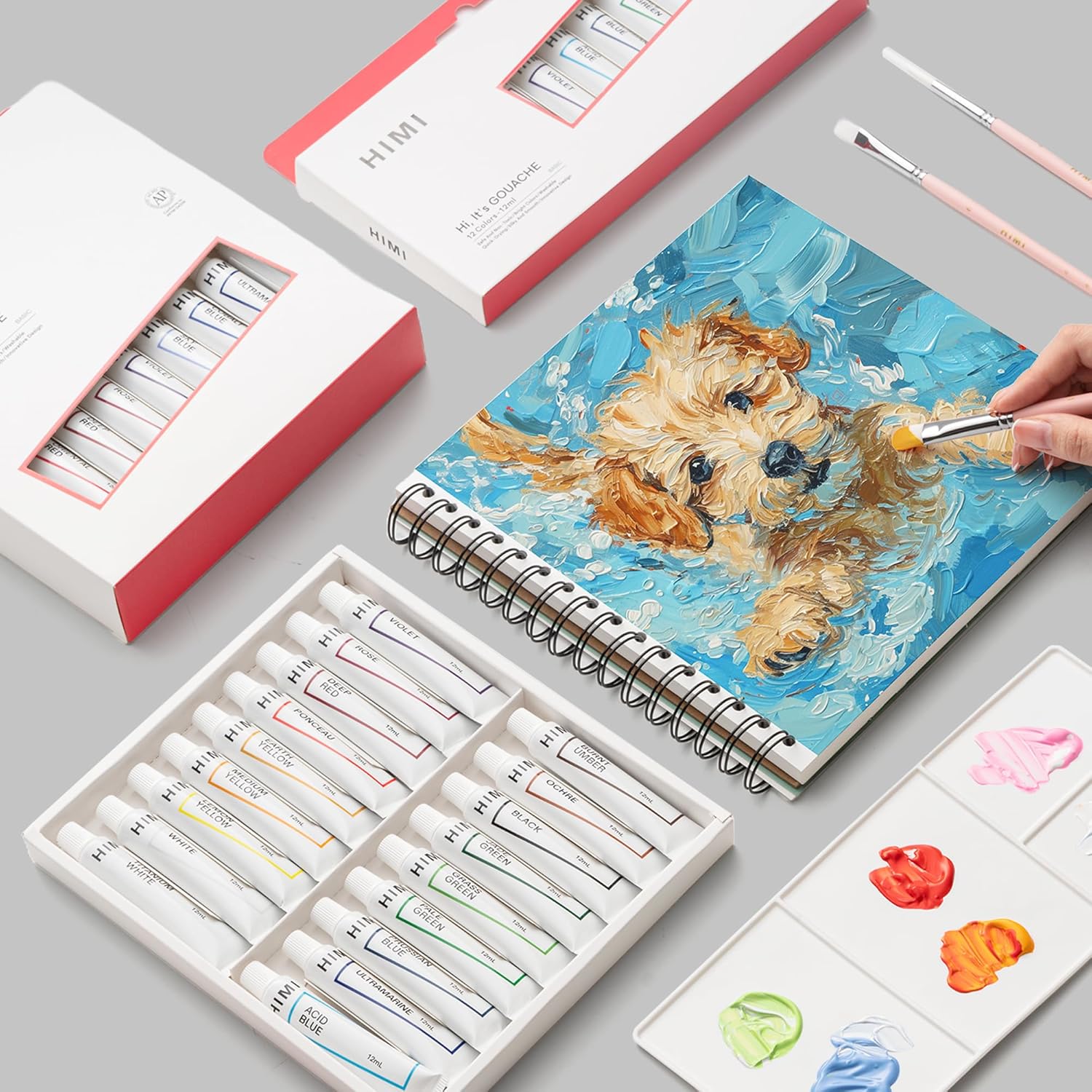 HIMI Gouache Paint Tube Set -18 Colors 12ml, with Rich Pigments, Gouache paint Non-Toxic, suitable for Beginners, Artists, and Hobby Painters. Beautiful Gifts for Art Supplies Painting(18 colors)