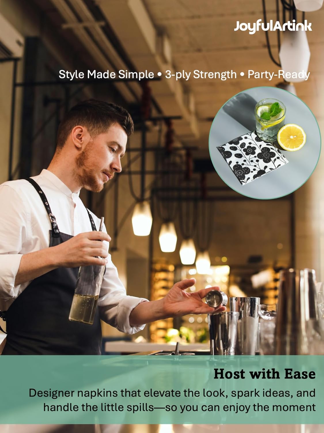 - Versatile and Practical: Ideal for special events, parties, picnics, BBQs, or everyday use. JoyfulArtink's cocktail paper napkins serving as functional essentials and beautiful decorative accents