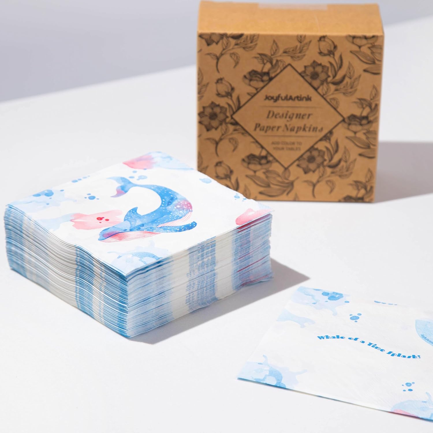 - **Charming Design:** Featuring a lovely, dreamy watercolor whale in shades of blue and pink, these napkins bring an artistic touch to your table, sparking imagination and a playful atmosphere
