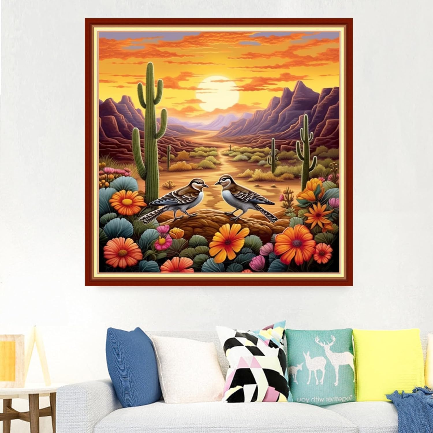 Foxdiviy Stamped Cross Stitch Kits Full Range of Embroidery Needlework Starter Kits for Beginners Adults 11CT Embroidery Patterns Art Crafts DIY Needlepoint Kits-Sunrise Bird 18x18 inch