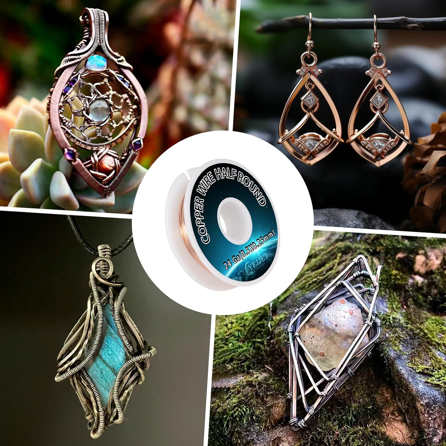 Ultra-Fine 24 Gauge Copper Wire Half Round 0.5x0.25mm - 1.3 oz (112 Feet) Precision Wire for Clockmaking & Electronics