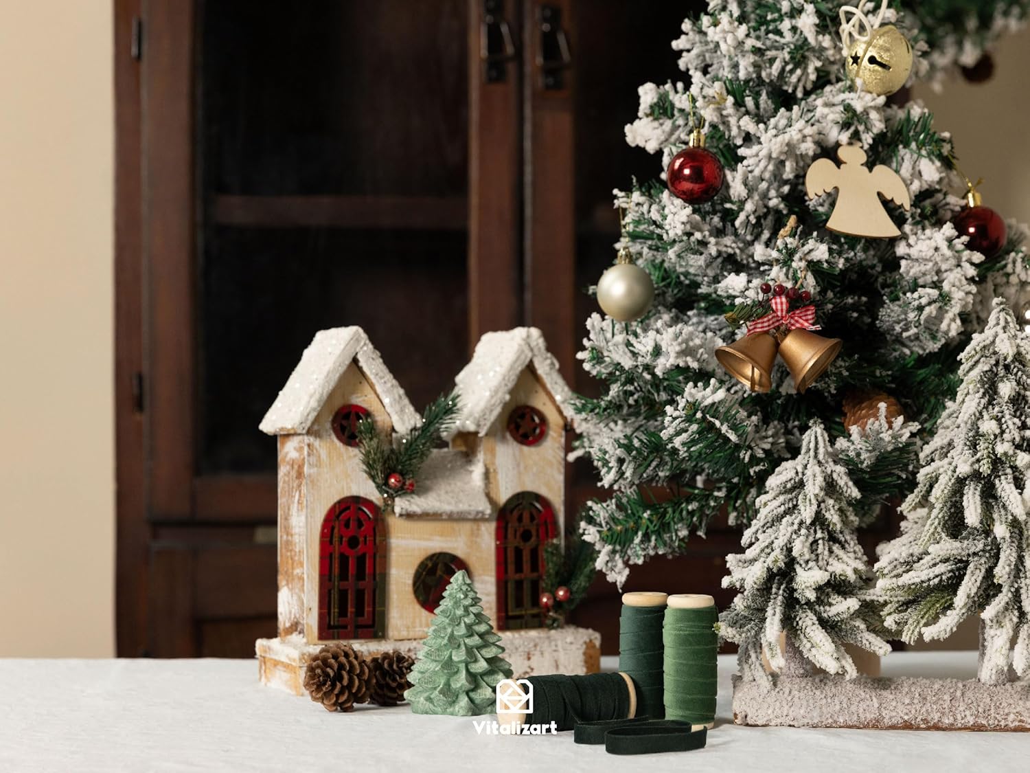 Vitalizart Green Velvet Ribbon 3/8" x 15 Yd Fabric Trim 3 Rolls * 5 Yd for Christmas Wreath Decoration Handmade Craft Ornaments Gift Wrapping & Bow Making Dark Forest