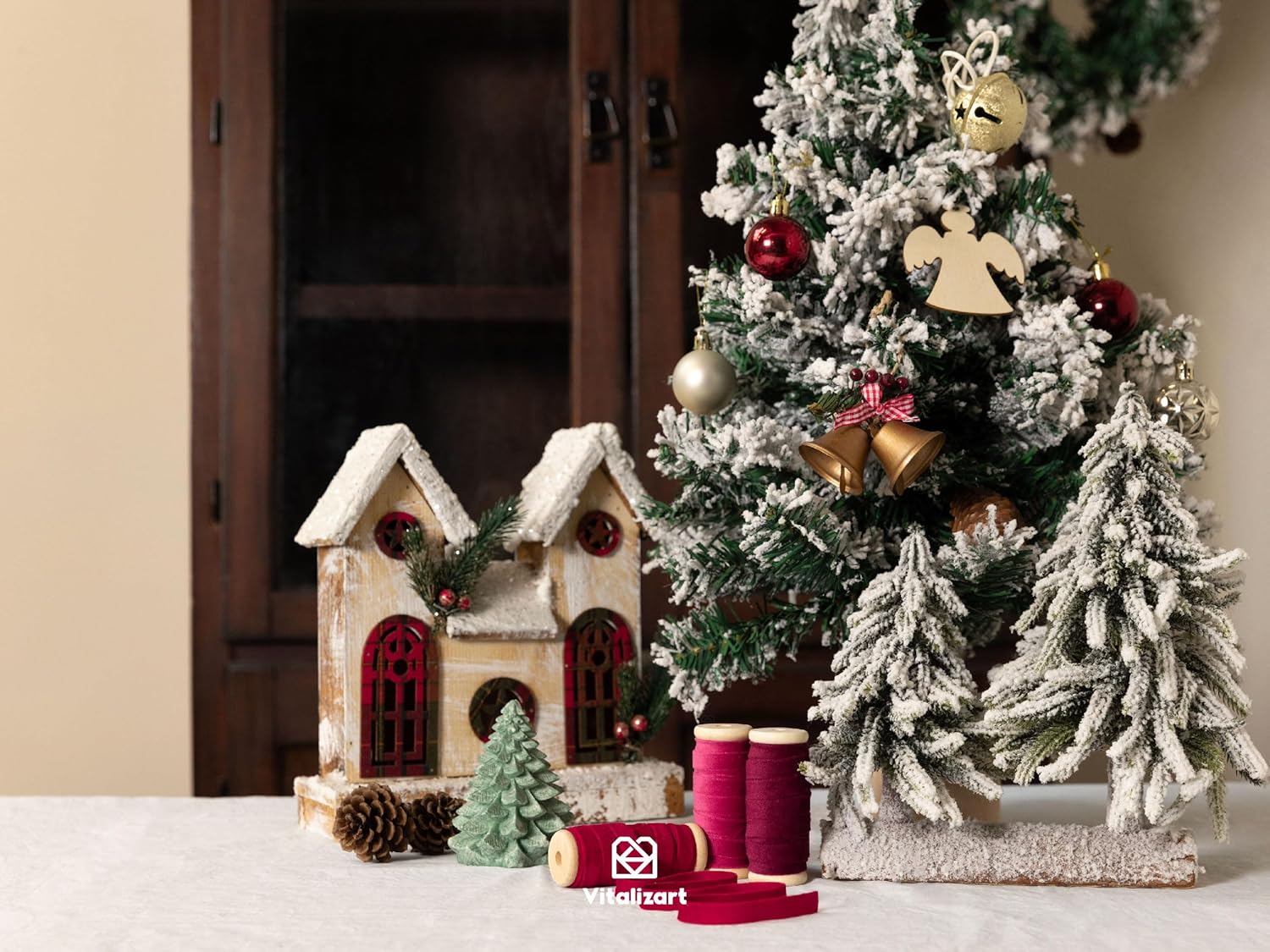Vitalizart Red Velvet Ribbon Set 3/8" x 15 Yd Burgundy Fabric Trim 3 Rolls * 5 Yd for Christmas Wreath Decoration Handmade Craft Ornaments Gift Wrapping & Bow Making