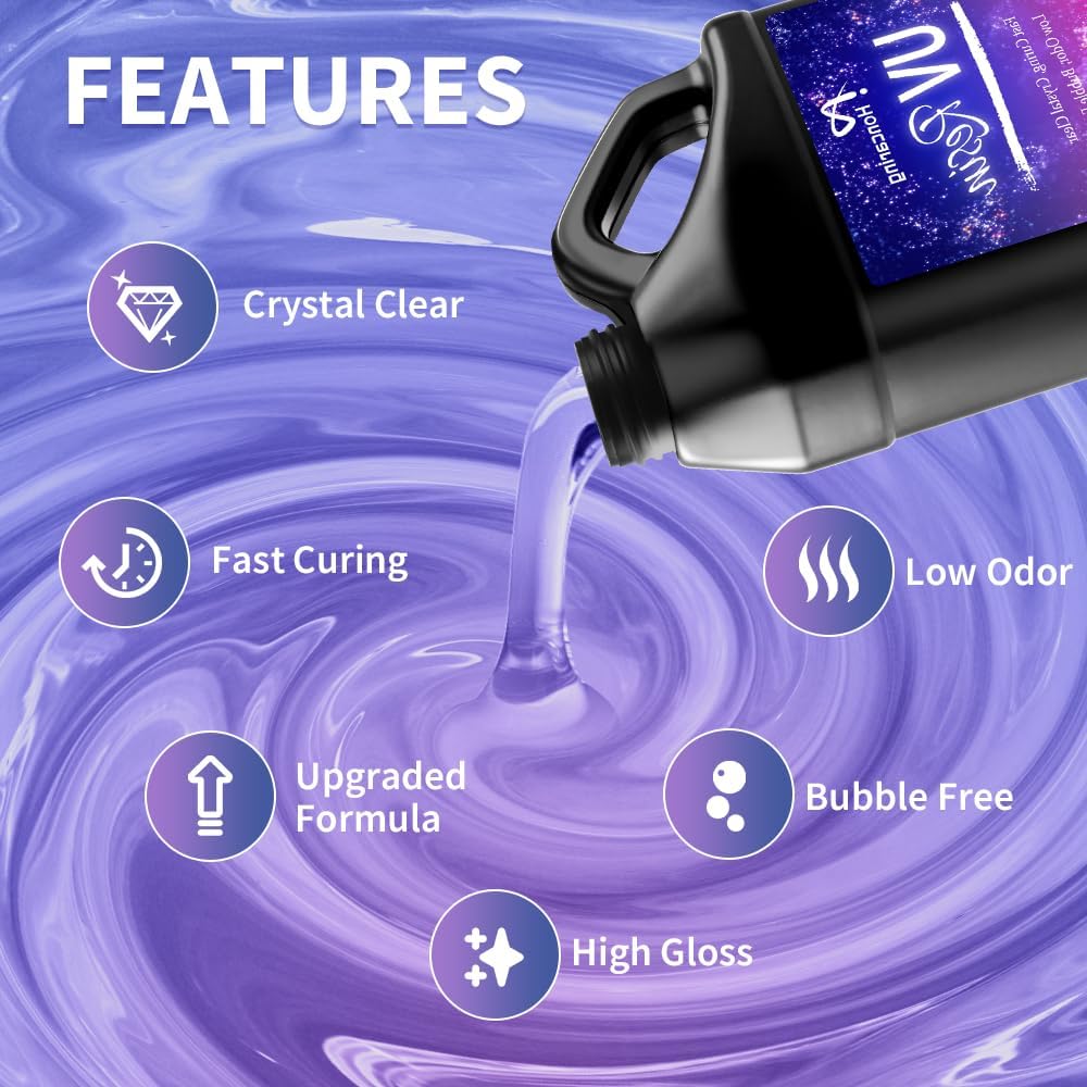 - UV Resin Bulk 2000g: Honcaring UV resin is made of premium materials. Silicone gluing tools can help you better operate the DIY process. Cure UV resin with UV resin light, the light power higher, the curing time shorter