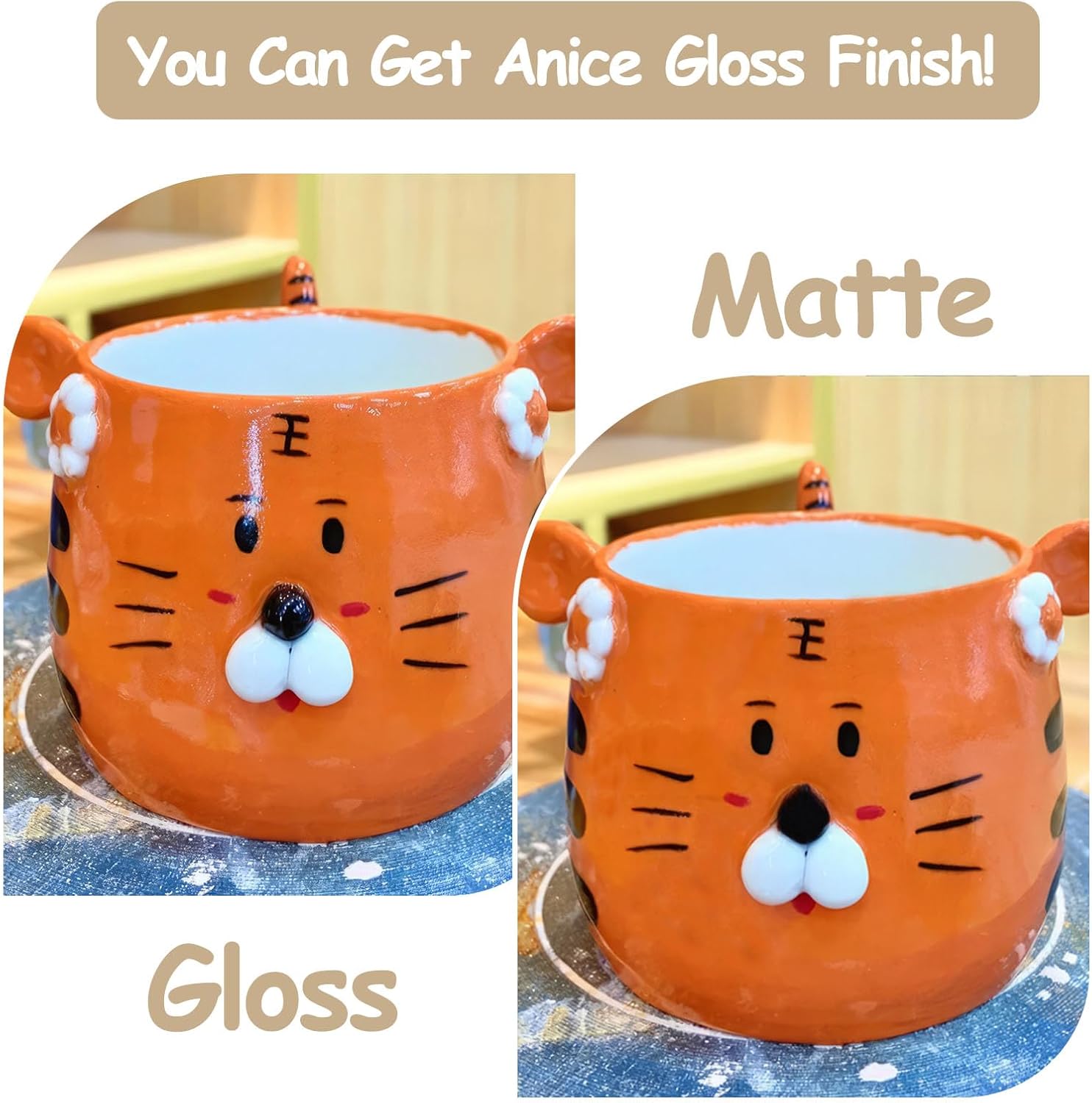 - Clear Coat Varnish: Dries to transparent, high gloss finish. you don't need a kiln to make beautiful pottery that is gloss finish at home! Allow your pieces to withstand pottery with water without having to worry about it