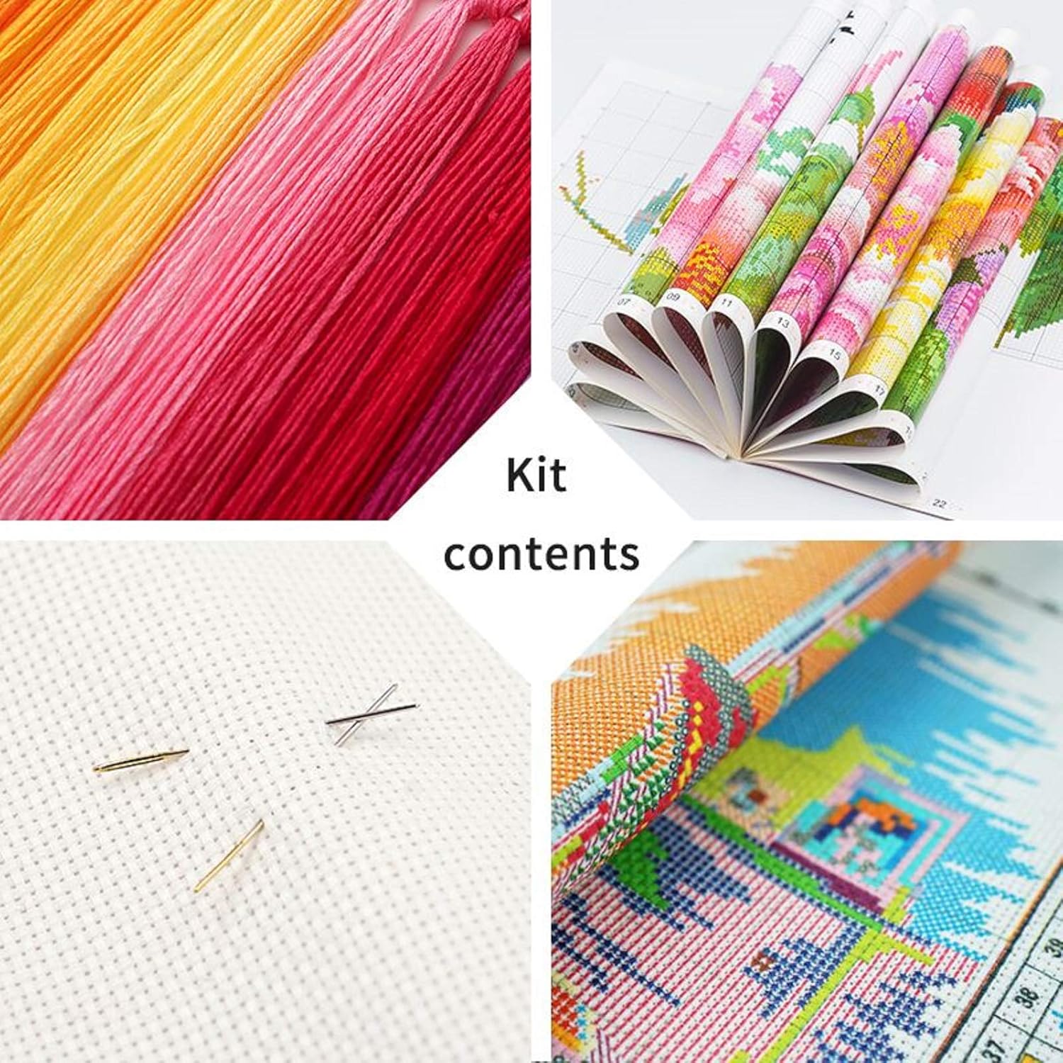 - 【11CT & Easy to Stitch】11CT Stamped canvas means an Pre-Printed fabric,Accurately pre-printed cute design as well as Arab numbers, symbols and DMC colors makes this cross-stitching work easy and fun learning, for all ages,It is better for eyes and easier to embroidery.High Quality Cotton threads,non-fading,not easy to break and pilling.
