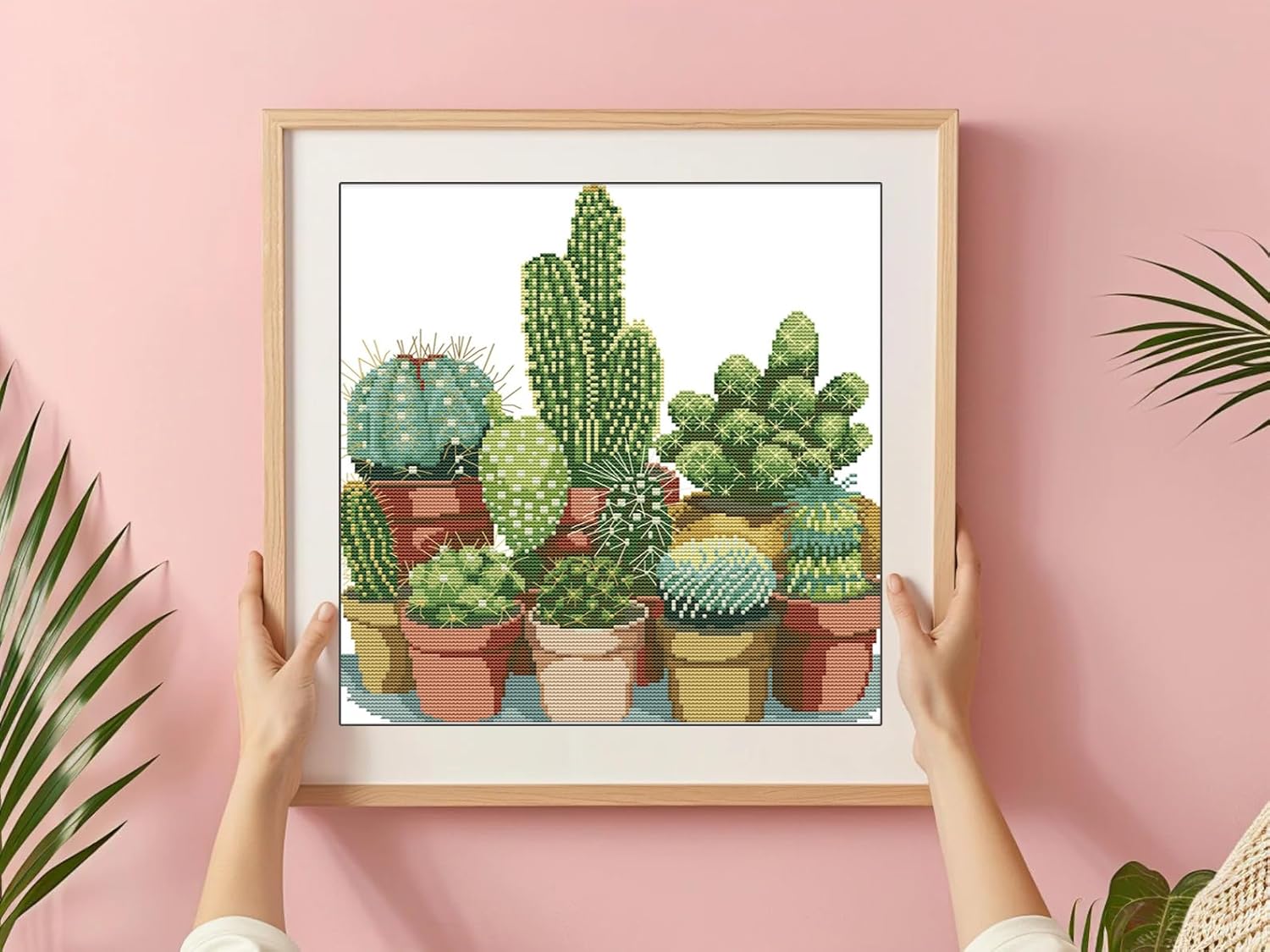 Maydiyer 11CT Stamped Cross Stitch Kits Pre-Printed Embroidery Kit, DMC Threads Needlework Sets-Cactuses 16.9×17.7 inch