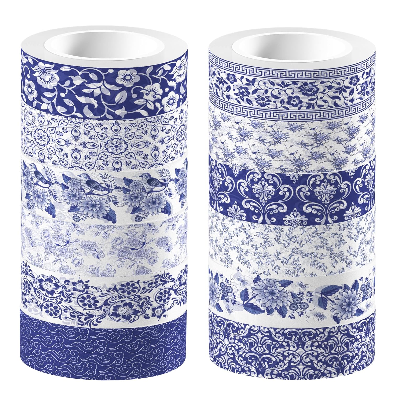12 Pcs blue and white porcelain Washi Tape Maple Leaf Print Masking Tape Pumpkin Pattern Decorative Paper Sticker for Fall Party Holiday Scrapbook DIY Craft Gift Wrapping Handbook Sticker